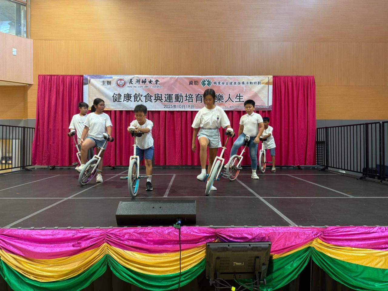 我校單輪車隊的同學有幸獲邀參與由職業安全健康局資助、長洲婦女會主辦的「健康飲食生活與快樂培育人生」活動。同學在表演中大顯身手,展現了運動的樂趣與健康活力!