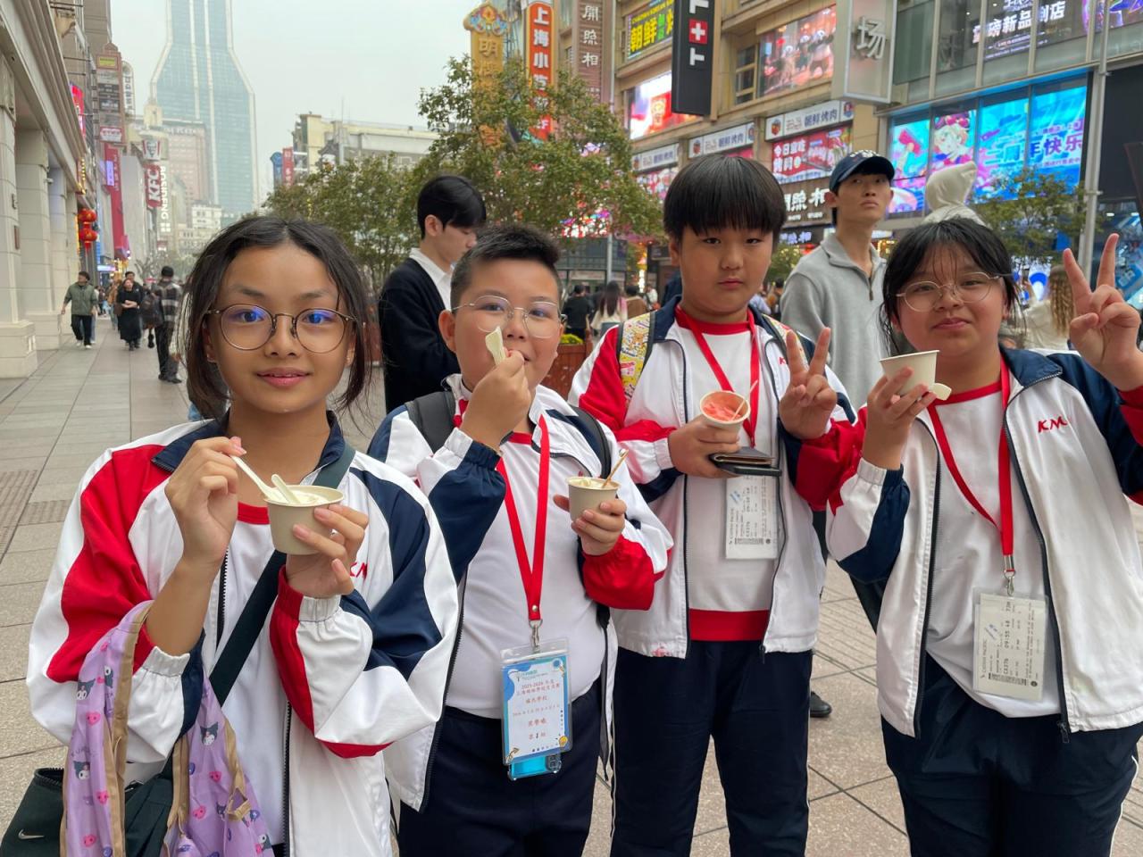 今天的行程充實而溫暖我們走進姊妹學校——復旦大學附屬徐匯實驗學校,親身體驗上海學校的學習氛圍。同學們參加了有趣的匹克球運動在歡聲笑語中揮灑活力;古詩詞課堂上,大家沉浸在優美詩文裏,感受中華傳統文化的韻味。遠在香港的同學們也透過線上連線同步參與,還帶來了精彩的表演,兩地師生隔空互動、心意相連