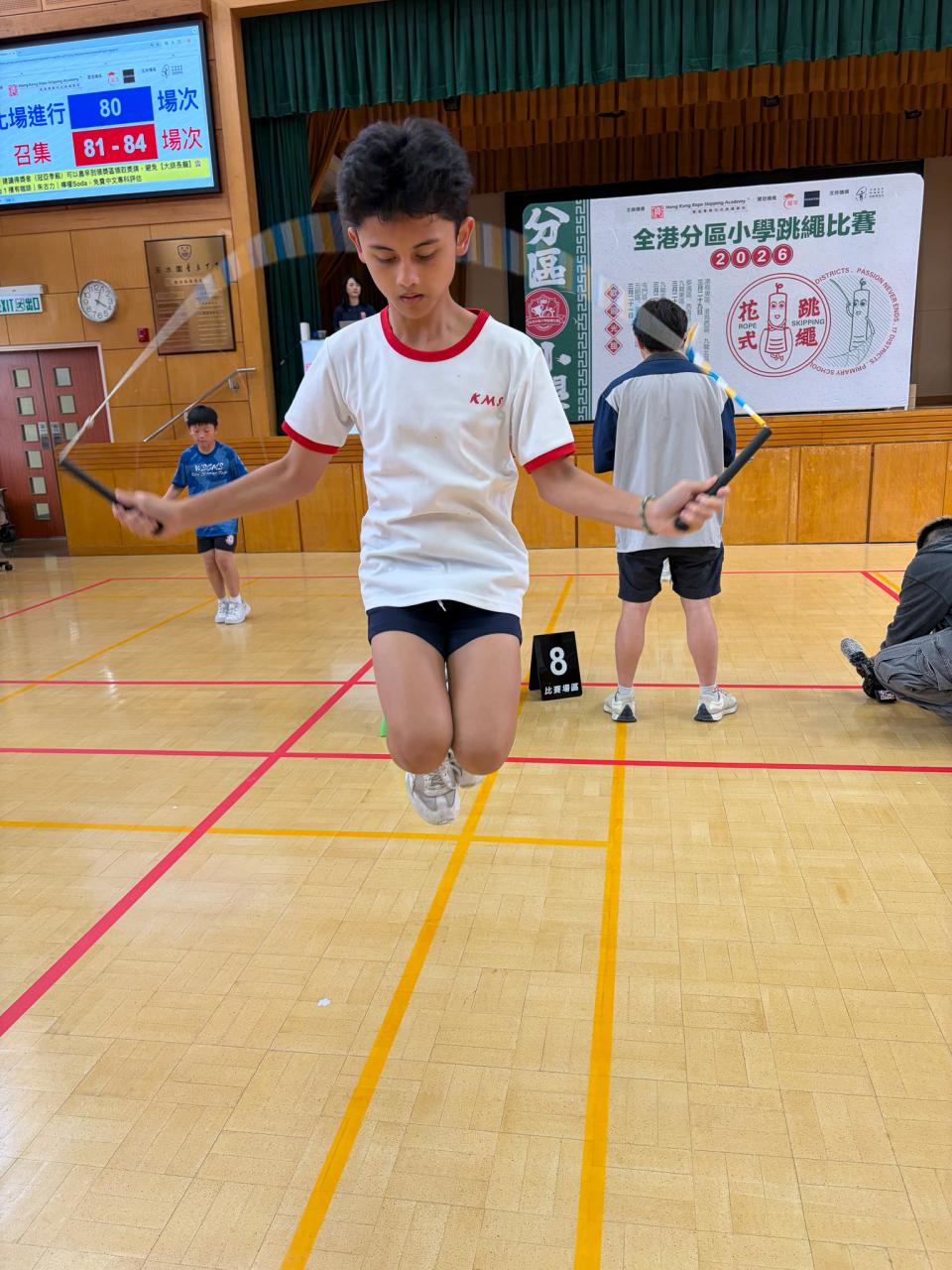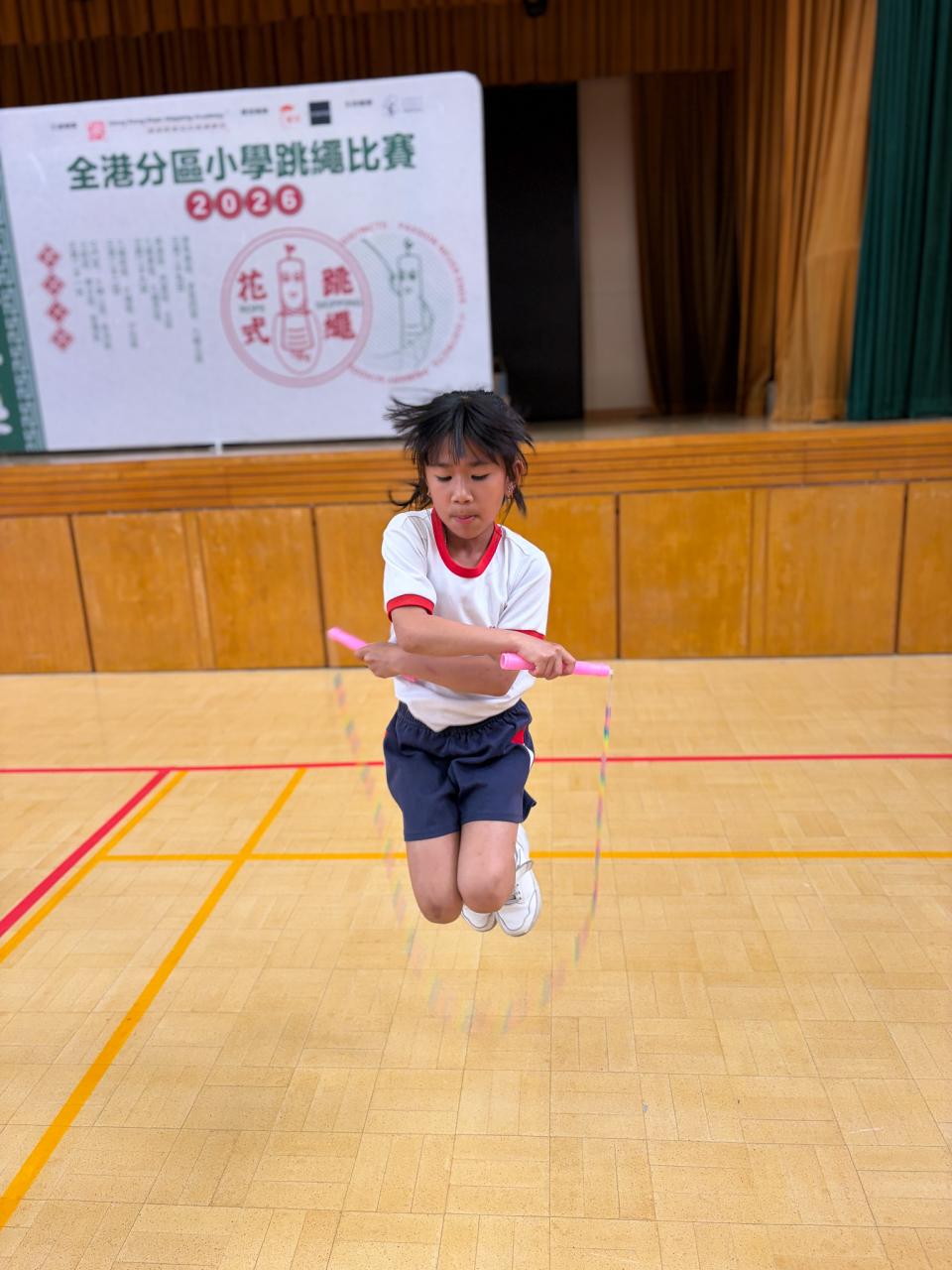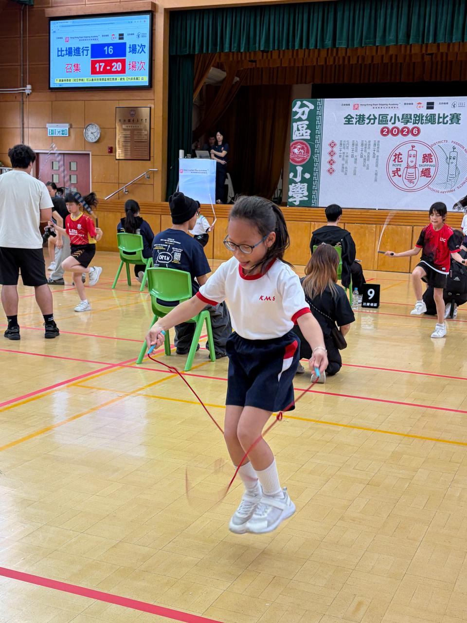 在3月21日(星期六)跳繩隊學生在「全港分區小學跳繩比賽2026」賽場上全力以赴,展現出無比嘅拼勁與活力!
