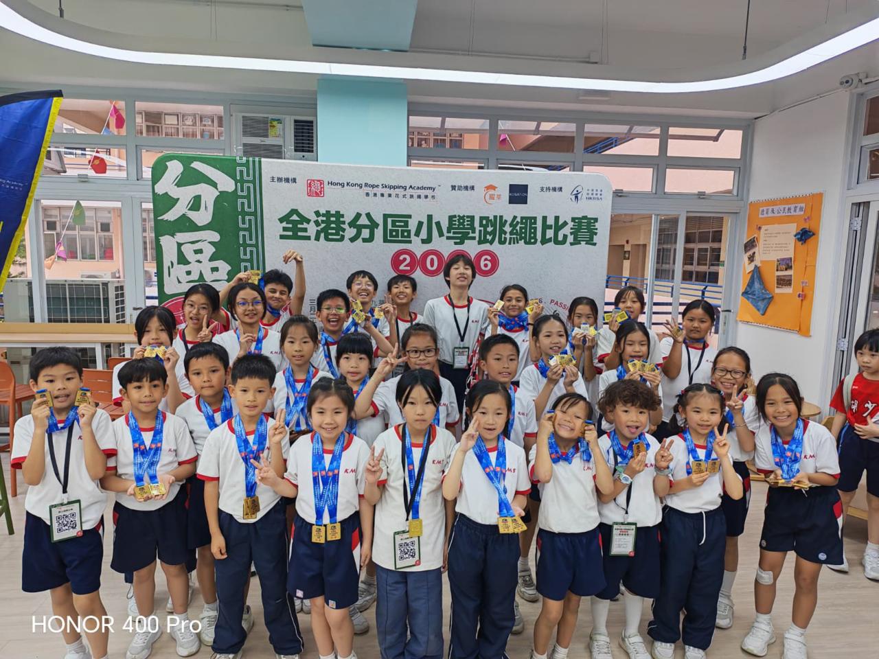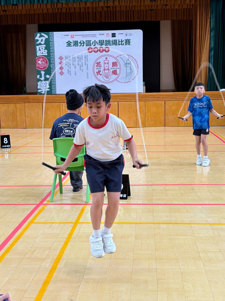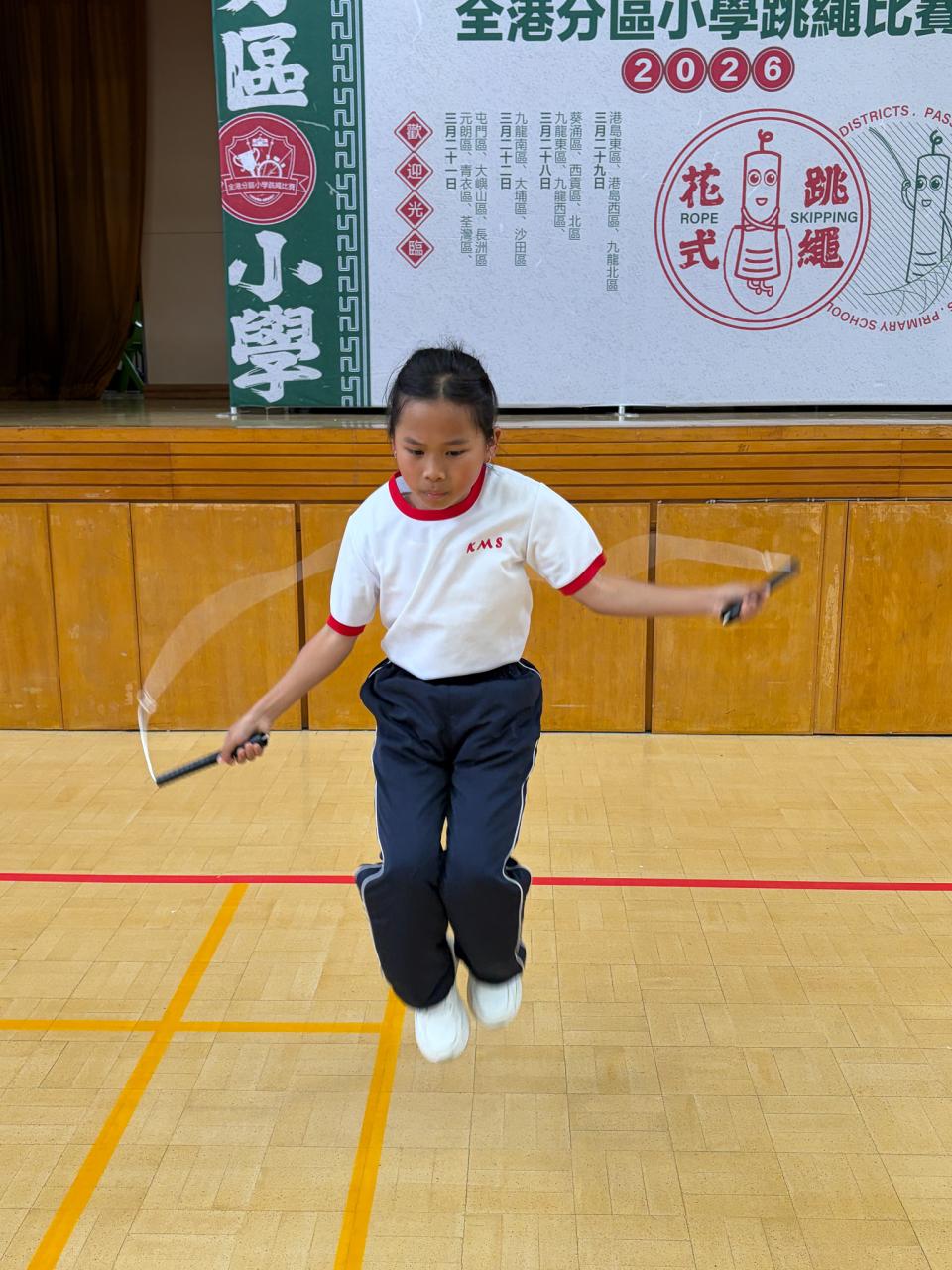 在3月21日(星期六)跳繩隊學生在「全港分區小學跳繩比賽2026」賽場上全力以赴,展現出無比嘅拼勁與活力!