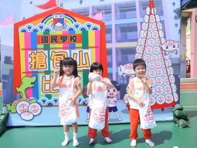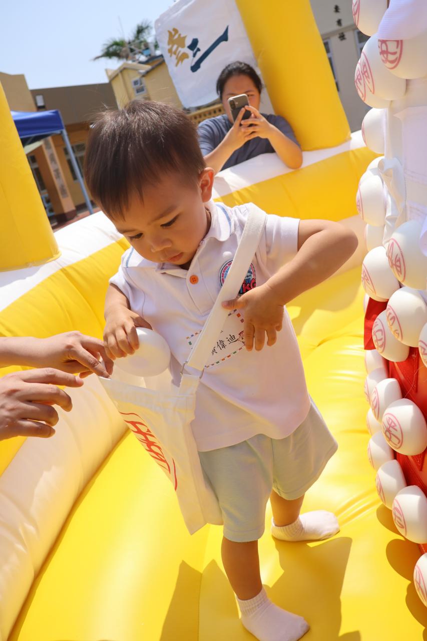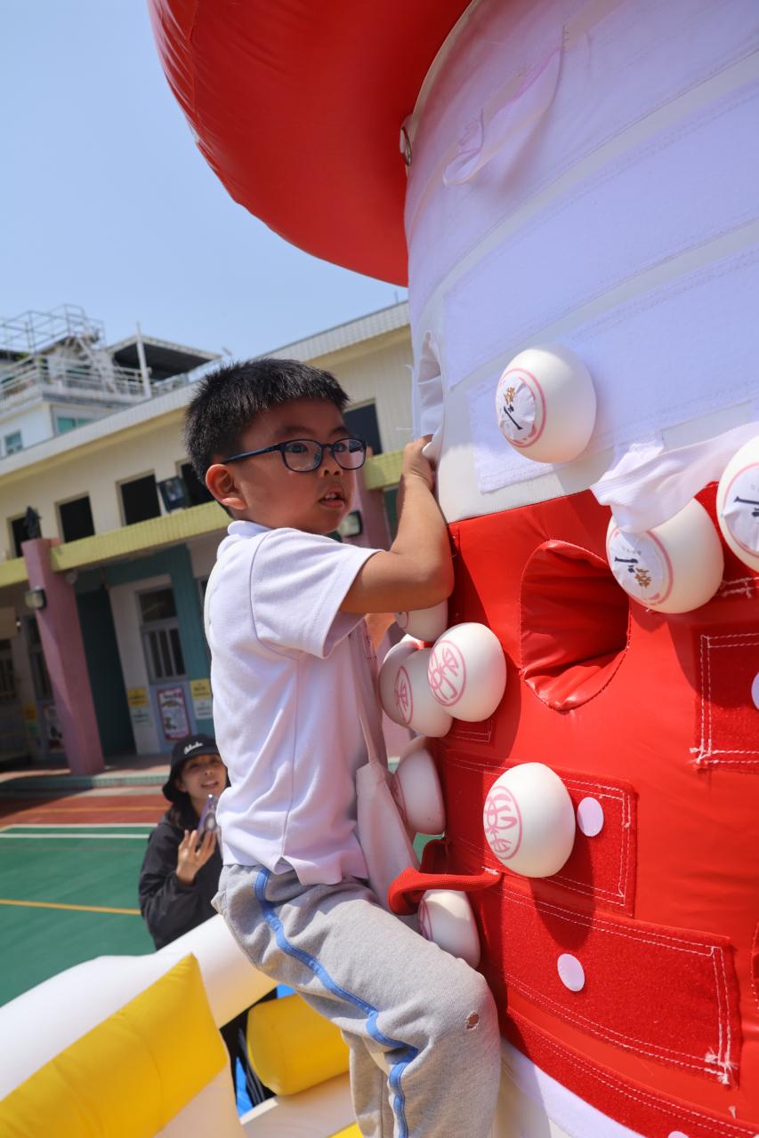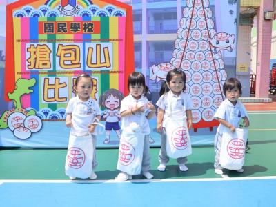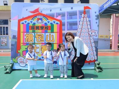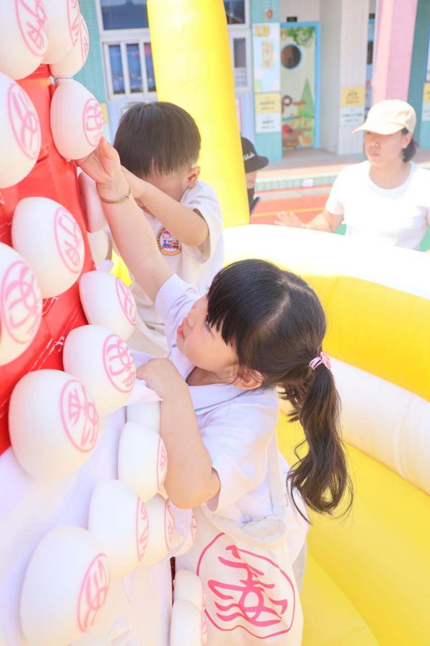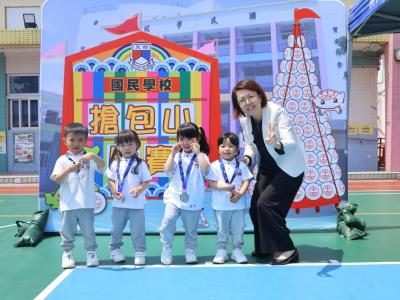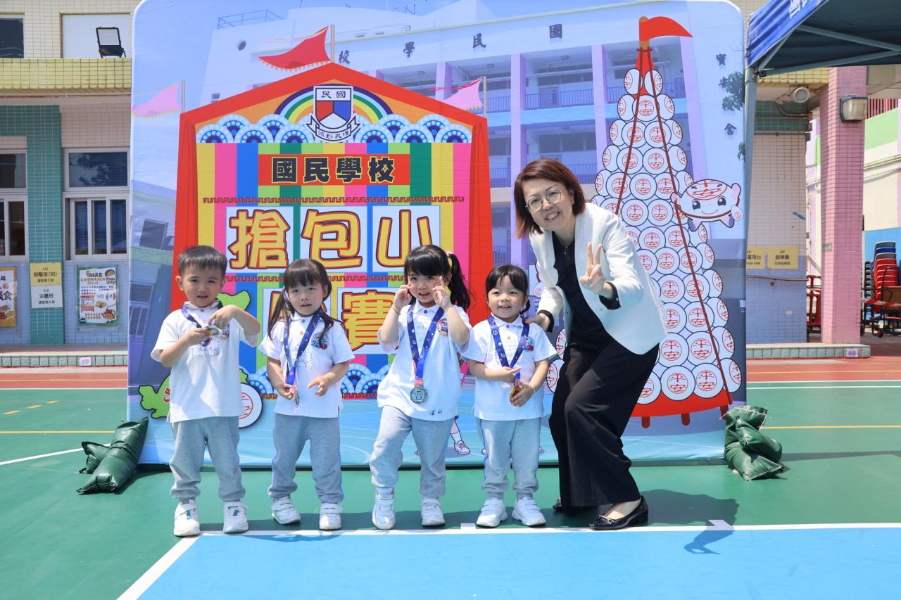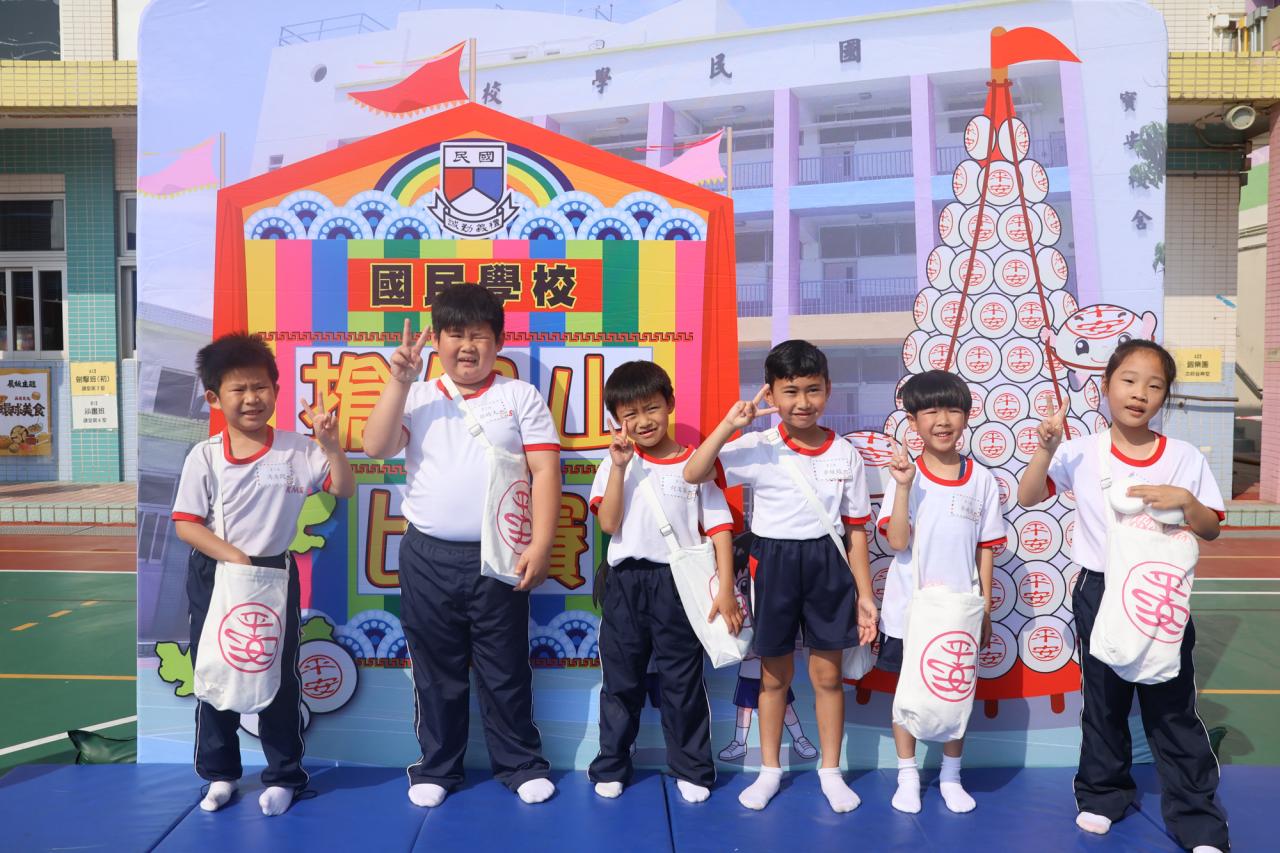 這是一場充滿歡樂的校園「搶包山比賽」!操場上矗立着一座吸睛的充氣包山,上面掛滿了象徵祝福的「平安包」。本校初小學生及幼稚園小朋友們背着專屬的平安小袋,個個興奮不已,努力踮起腳尖、伸手摘取平安包。看着他們認真又投入的神情,以及與同學們開心合影時那燦爛的笑容,這場別開生面的活動,讓孩子們在歡笑中親身體驗了長洲太平清醮的傳統節慶活動,真是很有意義!