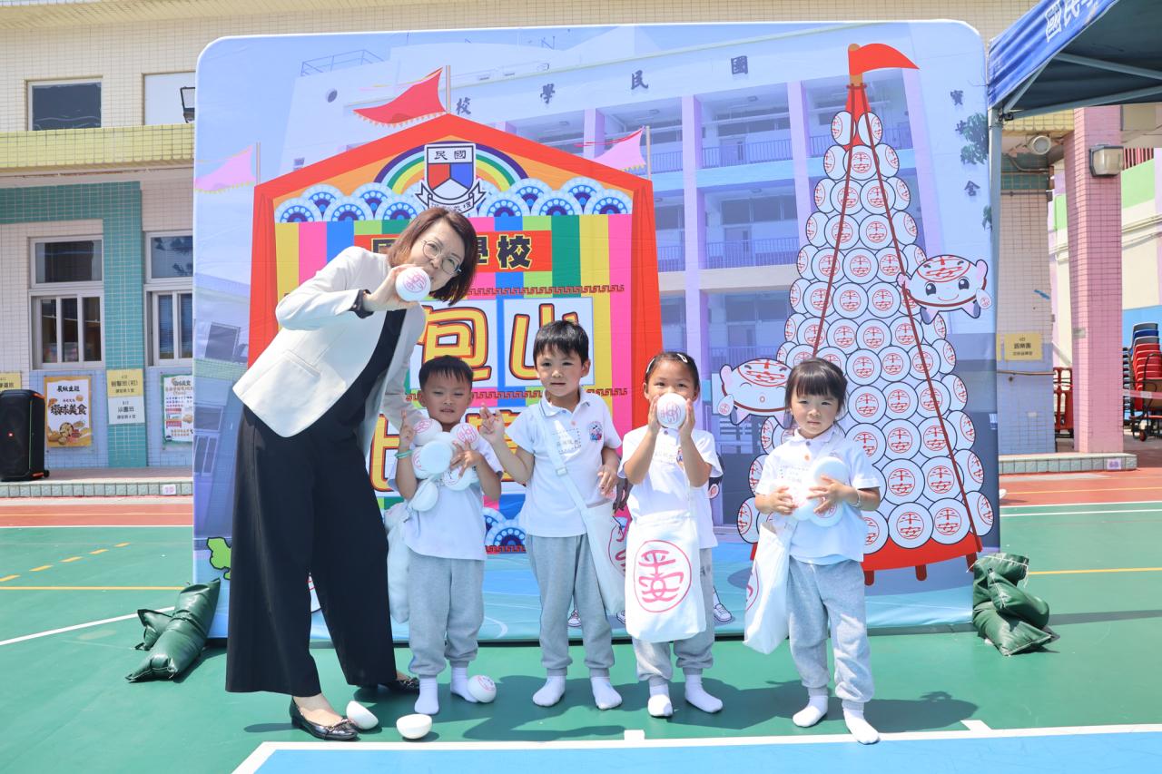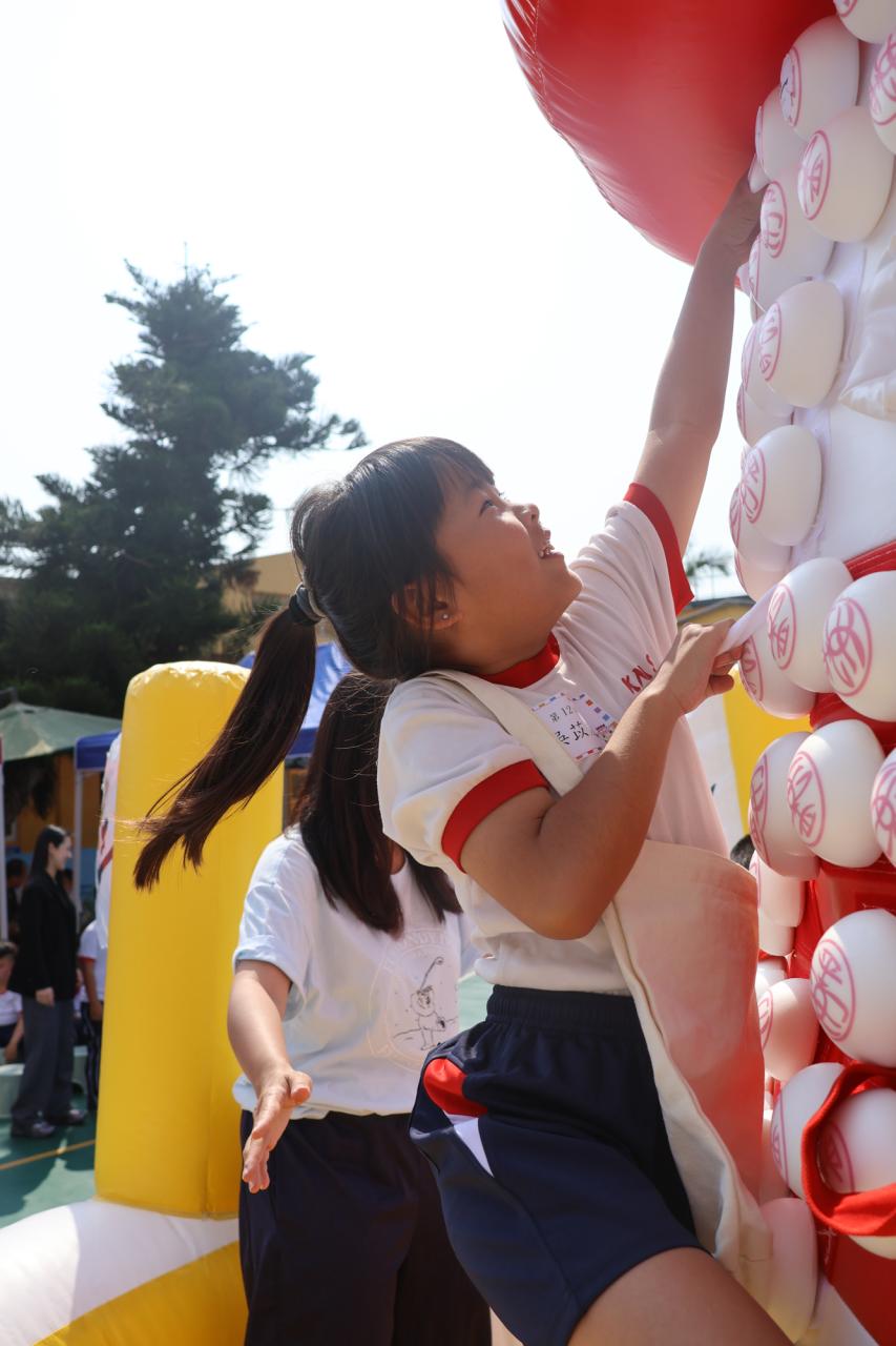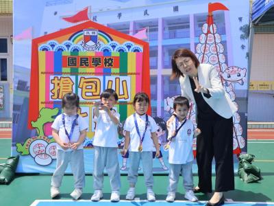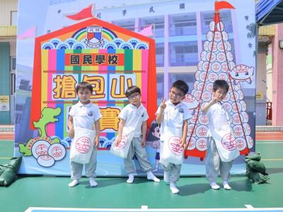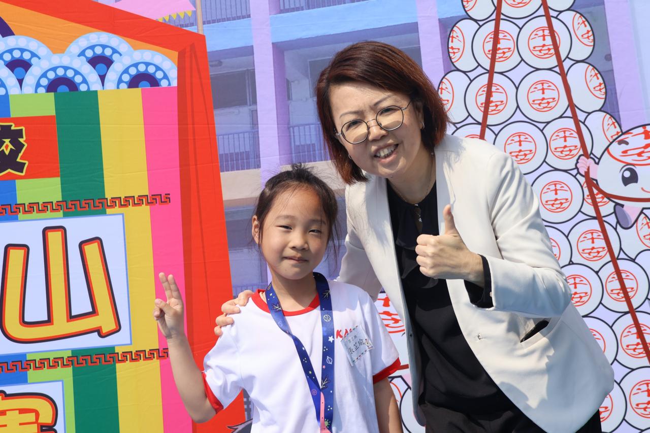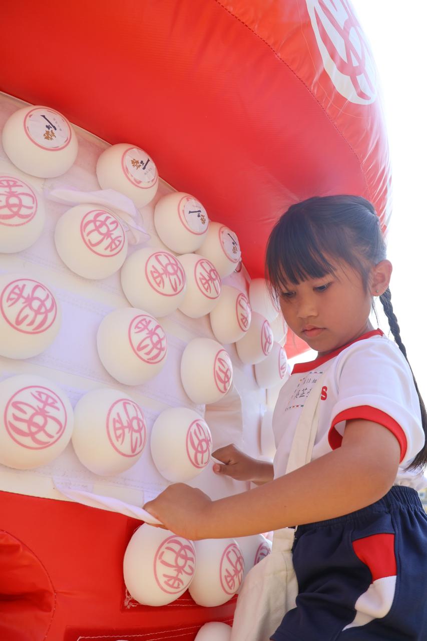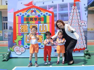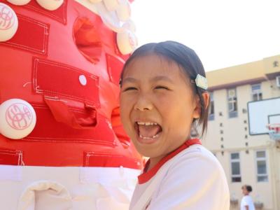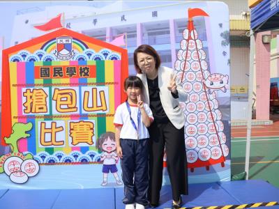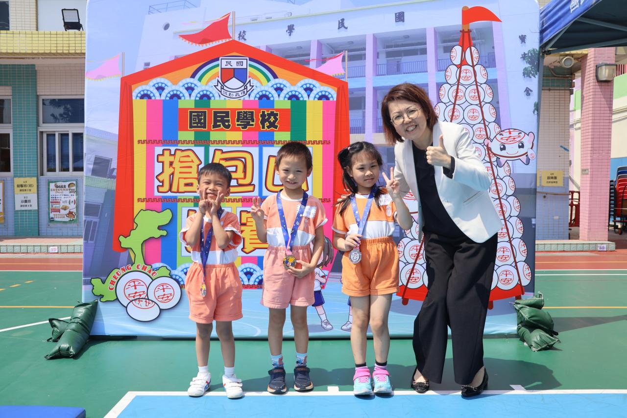 這是一場充滿歡樂的校園「搶包山比賽」!操場上矗立着一座吸睛的充氣包山,上面掛滿了象徵祝福的「平安包」。本校初小學生及幼稚園小朋友們背着專屬的平安小袋,個個興奮不已,努力踮起腳尖、伸手摘取平安包。看着他們認真又投入的神情,以及與同學們開心合影時那燦爛的笑容,這場別開生面的活動,讓孩子們在歡笑中親身體驗了長洲太平清醮的傳統節慶活動,真是很有意義!