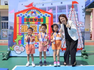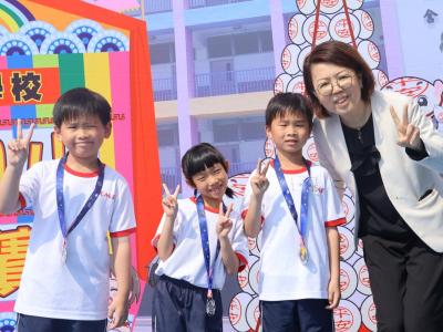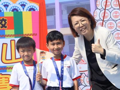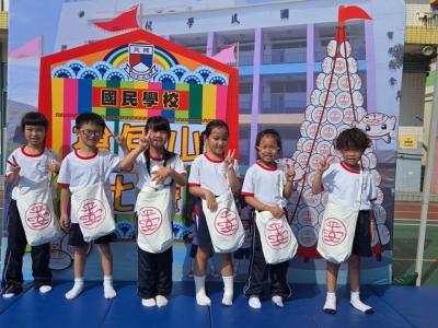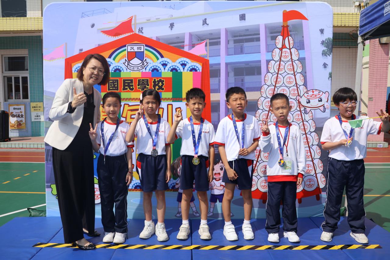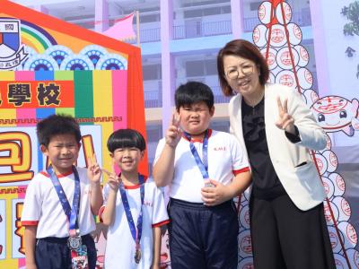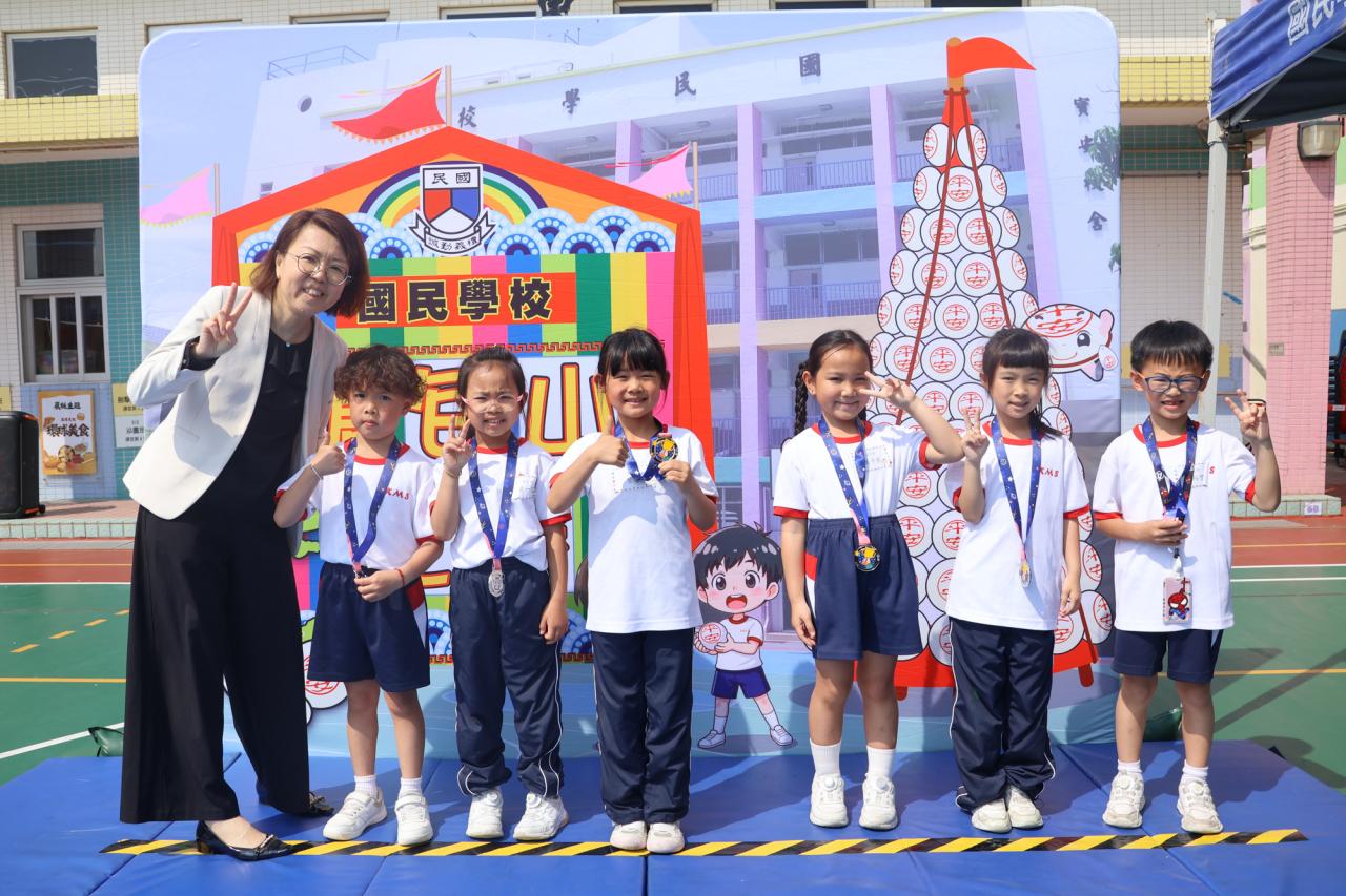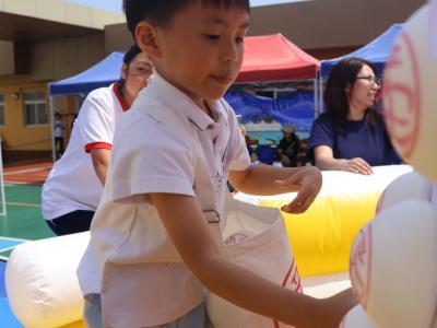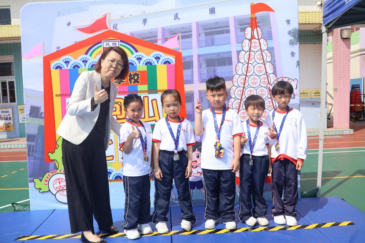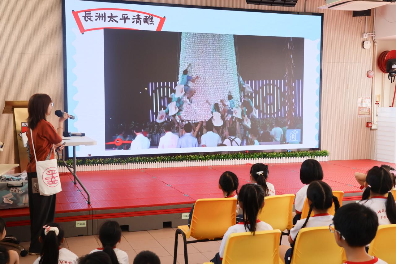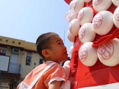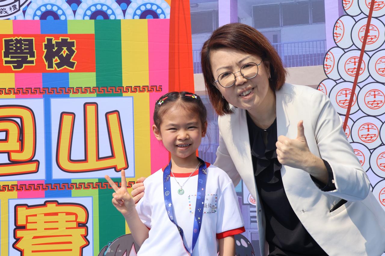 這是一場充滿歡樂的校園「搶包山比賽」!操場上矗立着一座吸睛的充氣包山,上面掛滿了象徵祝福的「平安包」。本校初小學生及幼稚園小朋友們背着專屬的平安小袋,個個興奮不已,努力踮起腳尖、伸手摘取平安包。看着他們認真又投入的神情,以及與同學們開心合影時那燦爛的笑容,這場別開生面的活動,讓孩子們在歡笑中親身體驗了長洲太平清醮的傳統節慶活動,真是很有意義!