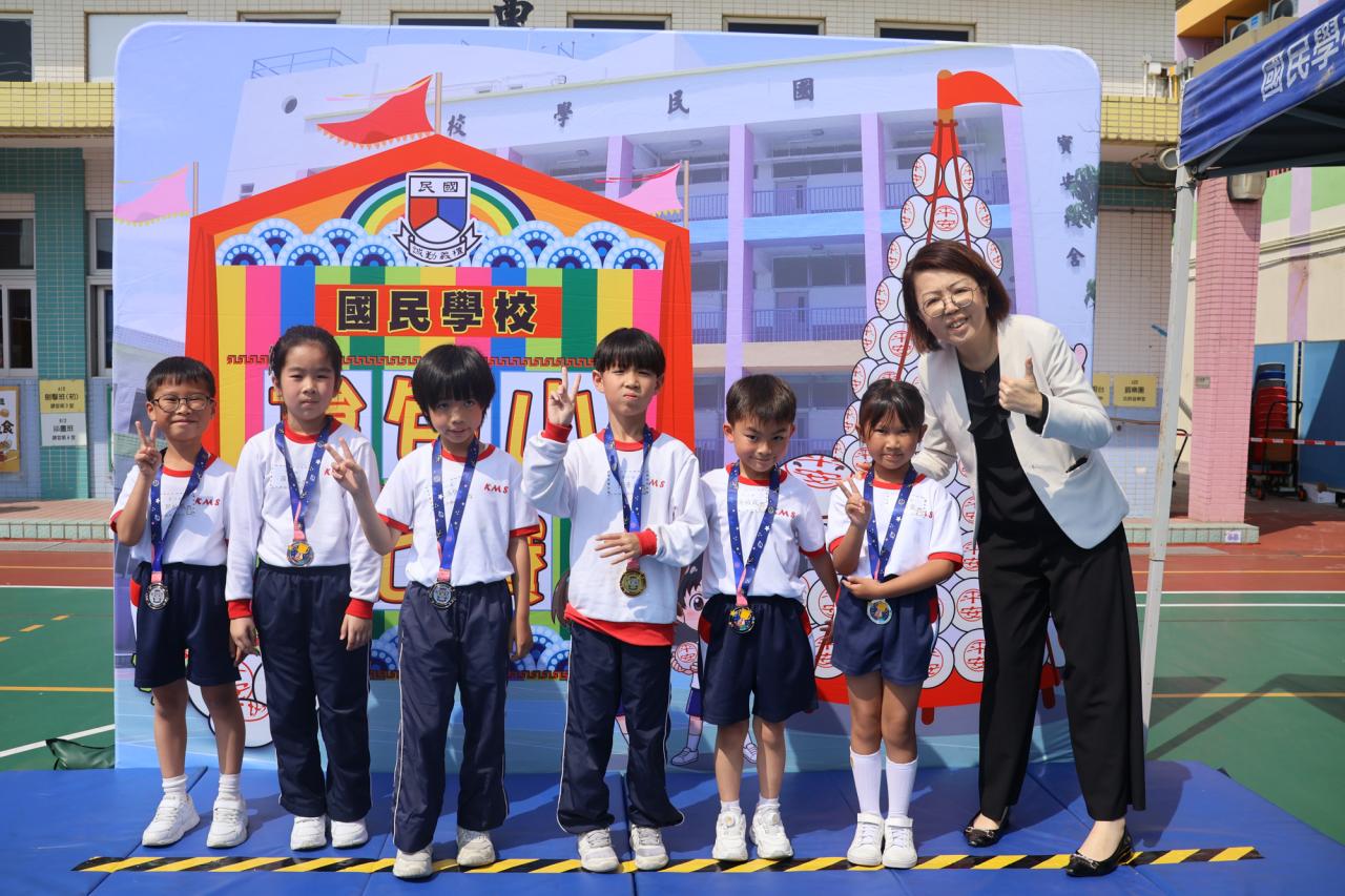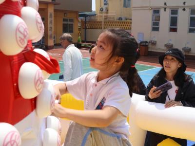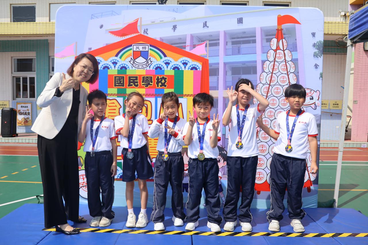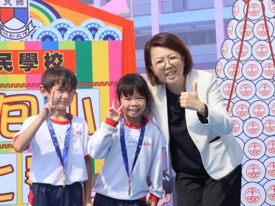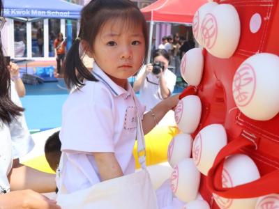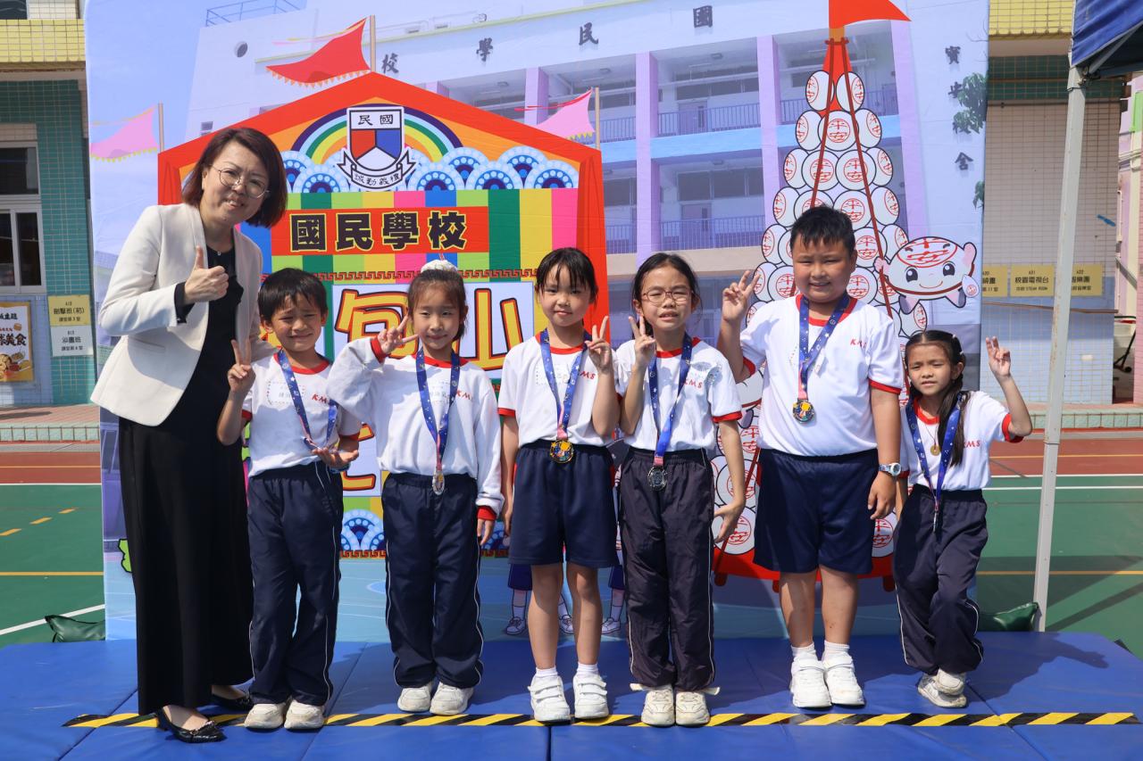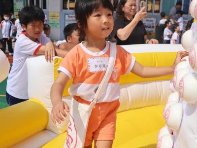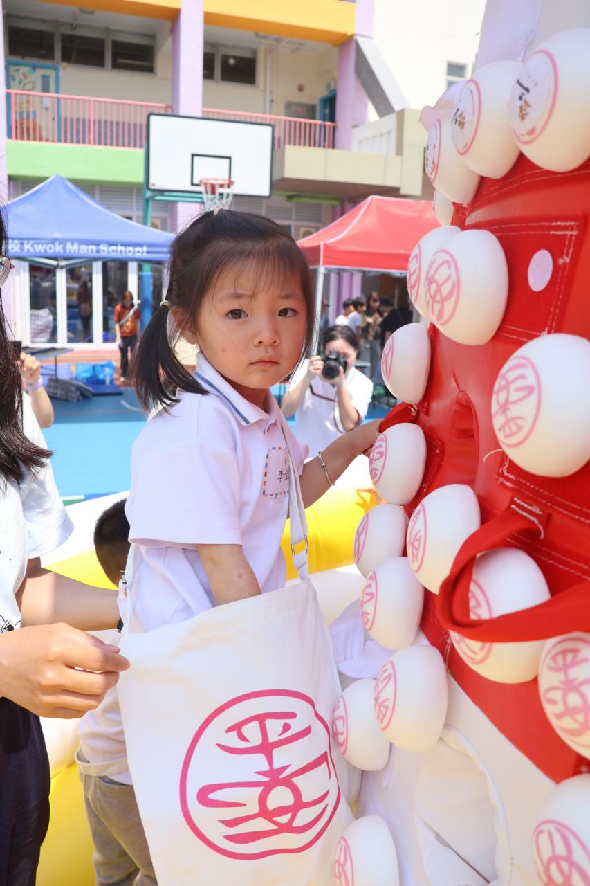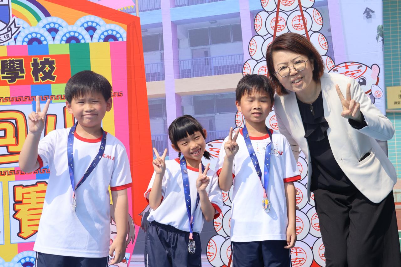 這是一場充滿歡樂的校園「搶包山比賽」!操場上矗立着一座吸睛的充氣包山,上面掛滿了象徵祝福的「平安包」。本校初小學生及幼稚園小朋友們背着專屬的平安小袋,個個興奮不已,努力踮起腳尖、伸手摘取平安包。看着他們認真又投入的神情,以及與同學們開心合影時那燦爛的笑容,這場別開生面的活動,讓孩子們在歡笑中親身體驗了長洲太平清醮的傳統節慶活動,真是很有意義!