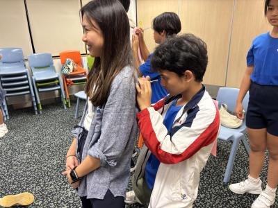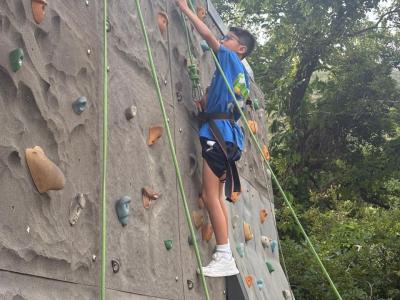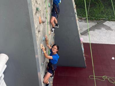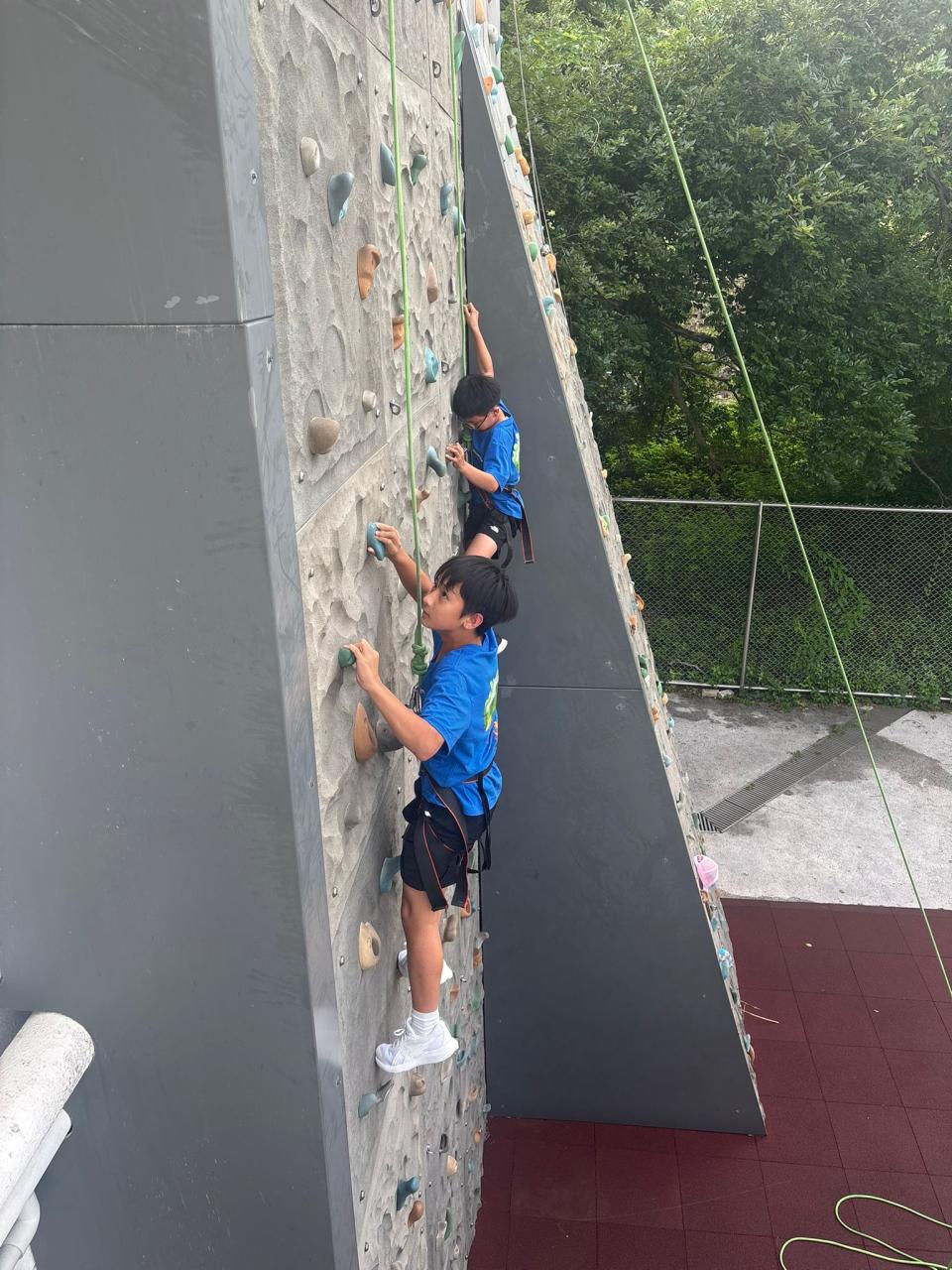 下午分組進行攀石與躲避盤,場上充滿吶喊與歡呼。