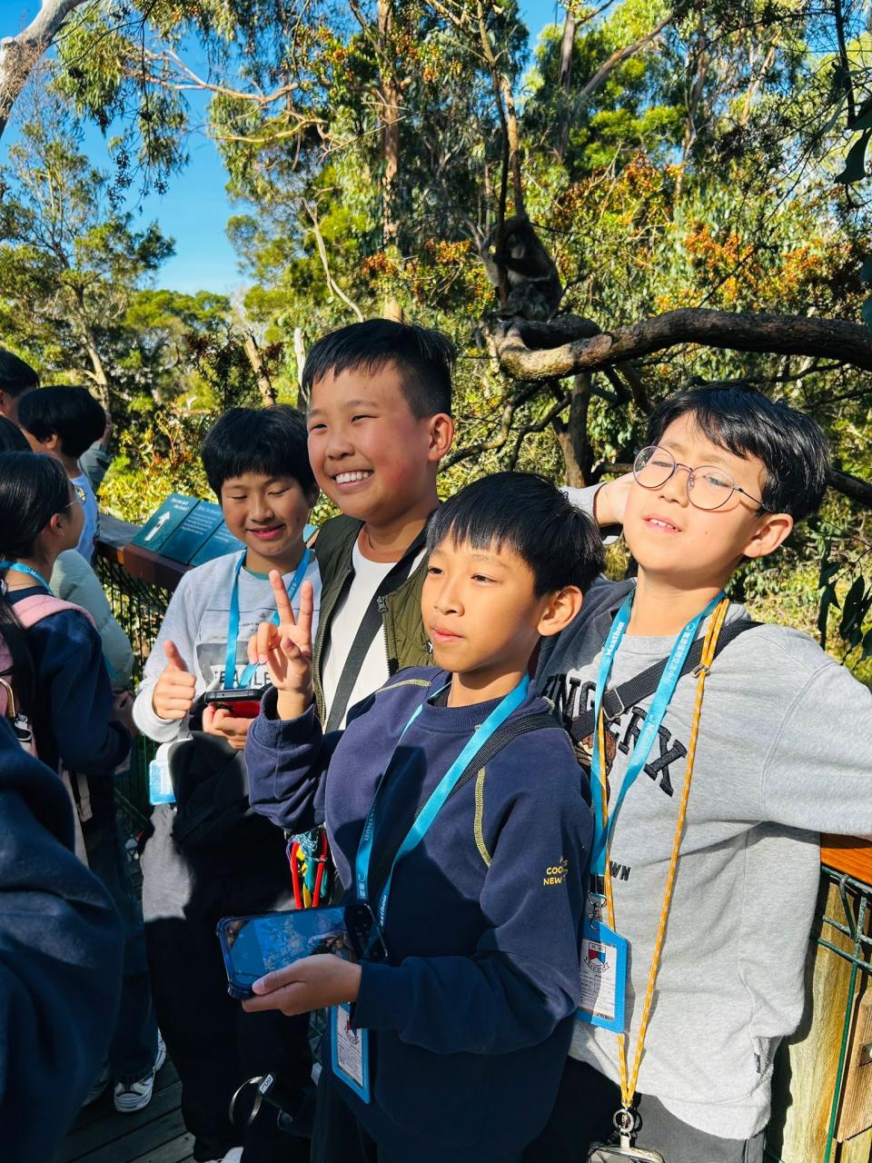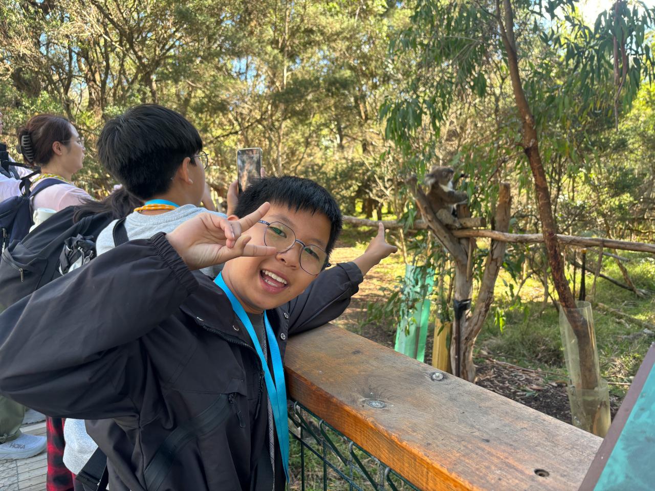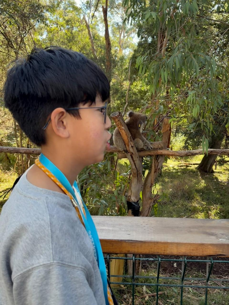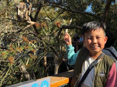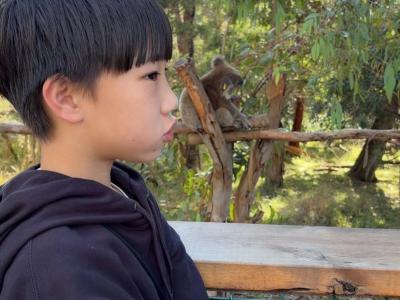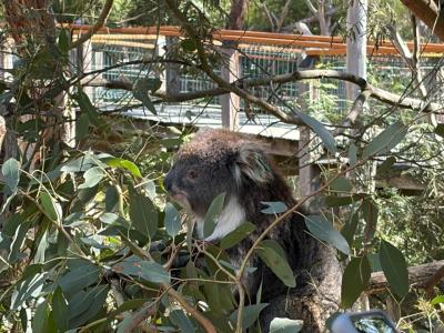 首先,我們來到了今天的第一站----樹熊保育中心。樹熊保育中心 (Koala Conservation Centre) 致力於保護樹熊的可持續生態及生活環境,遊客可以一邊漫步在澳大利亞樹林中,一邊在樹熊的自然棲息地中觀賞野生樹賞。在這裡,我們可以更近距離地觀察樹熊。到達之後,我們跟著導遊走入園內的步道,以便觀察樹熊。這次是我有史以來第一次看到沒有在睡覺的樹熊。雖然睡著的樹熊也很可愛,可醒著的樹熊更令我看得流連忘返。特別是牠們坐在樹上,努力地伸手去抓樹枝的樣子,可愛極了!