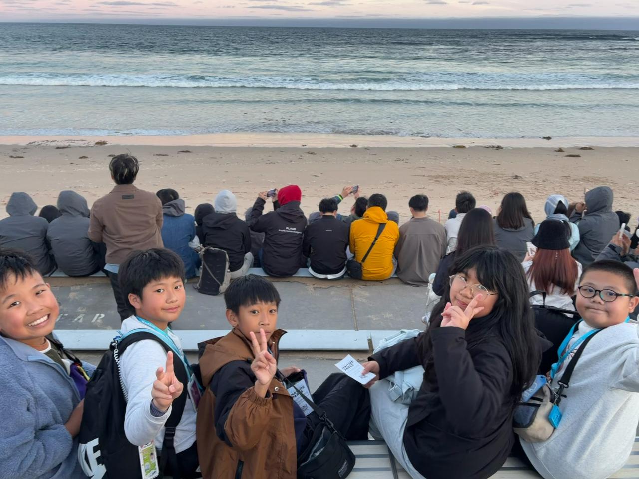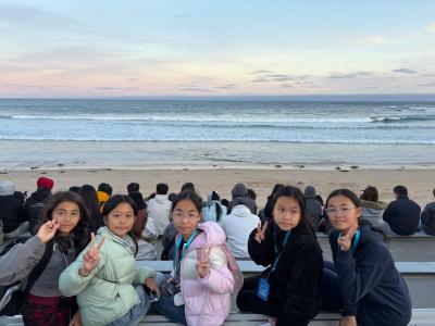 黃昏後,我們來到了我在整個澳洲交流中最期待的行程,也是菲利普島上的一大特色----觀看「企鵝歸巢」,而我們能看到的是神仙企鵝。(又名小企鵝、藍企鵝、小鰭腳企鵝,是企鵝家族中體型最小的物種,有別於其他常見企鵝,它們有一身藍色的羽毛,因此被稱作小藍企鵝。)我們坐在岸邊的凳上,等待神仙企鵝回巢。不過這一次,我們並沒有看到上百隻的企鵝成群結隊地回巢,但我們依然看到了幾隻神仙企鵝,它們在浪中一遍一遍的嘗試,最後也終於成功上岸。而且,菲利普島的環境很好,夜晚的天上可以看到清晰的星河,浩瀚深邃。