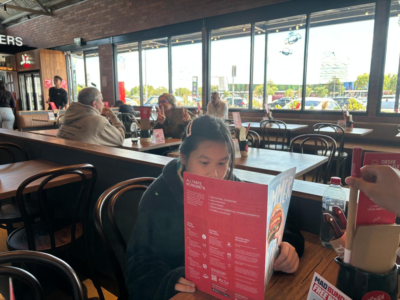 We went to a fast-food restaurant called Grill’d. We ate a delicious. It was very healthy because it had some fresh vegetables, and it was a natural hamburger. The meat was very juicy.