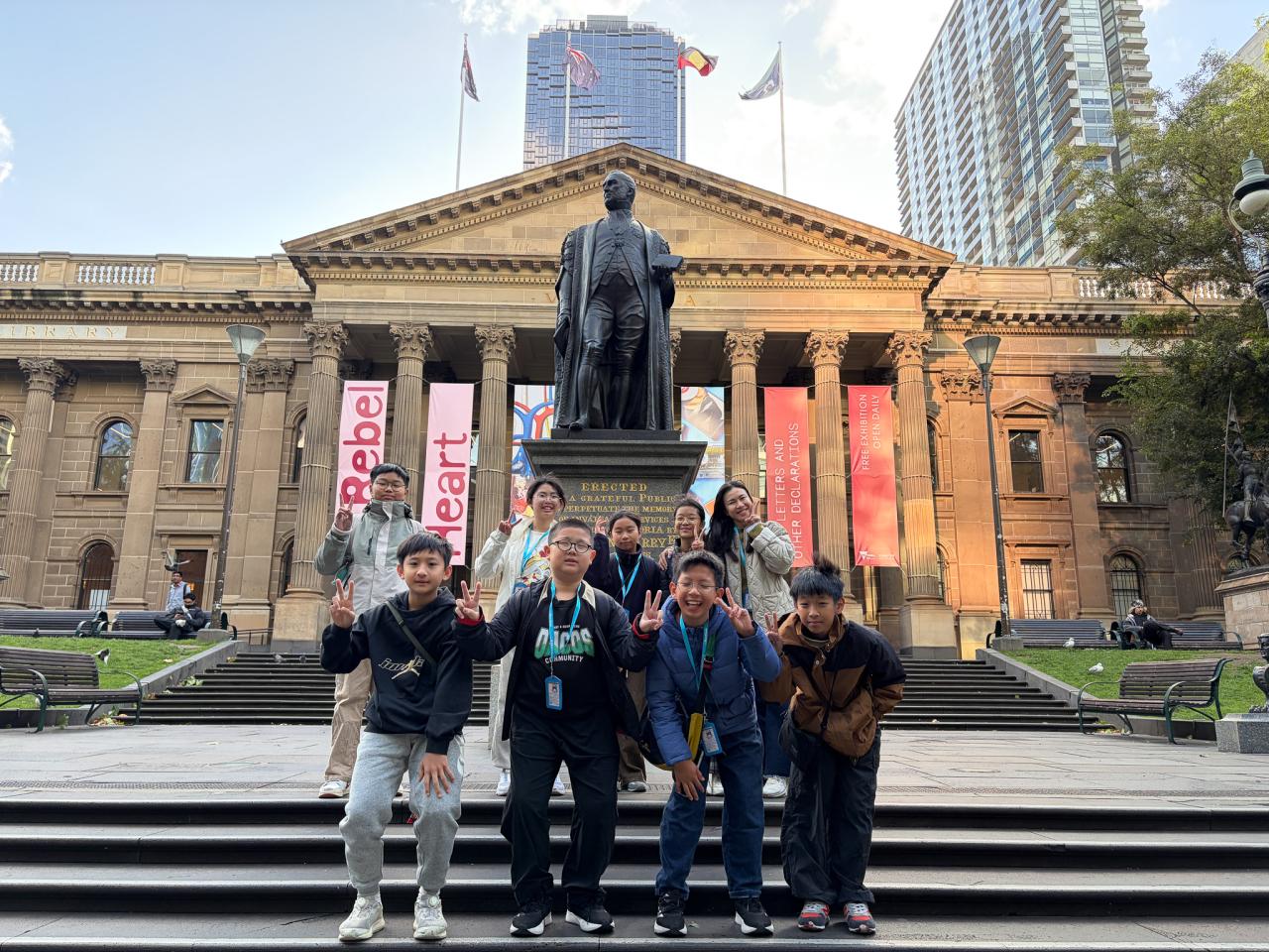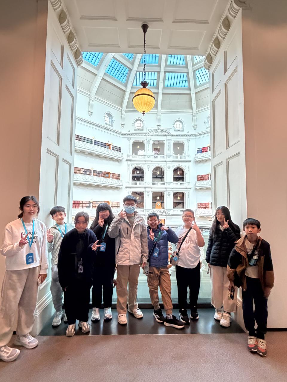 由於這裏是政府的行政地方,所以我們只能在門外拍照然後就離開了。接著,我們便去到維多利亞州立圖書館 (State Library Victoria)。聽說這是全世界最漂亮的圖書館呢!進入這個圖書館後,我們彷彿去到了白宮一樣,拱圓形的頂樓,再加上彷彿進入了霍格華茲的禮堂,實在宛如進了仙境一樣。這個美譽真是名副其實啊!