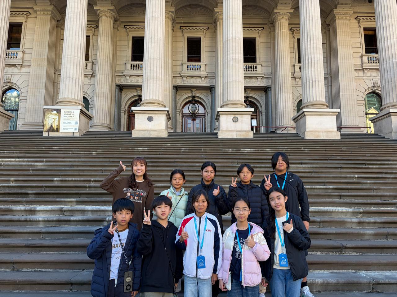 吃過早餐後,我們去到了澳洲墨爾本的國會大樓,聽說這個國會大樓與香港的立法會十分相似,也是用來開會或制定政策的。而在這裏我們也了解到澳洲年滿18歲的公民必須參與選舉投票,否則就會被罰款20元至100元的澳幣不等。我覺得這就有一點不公平了,因為其實這是人們的權利,如果他們想不到應該選擇哪位作為投票的人選,他們就一定要被迫隨便選擇一個。