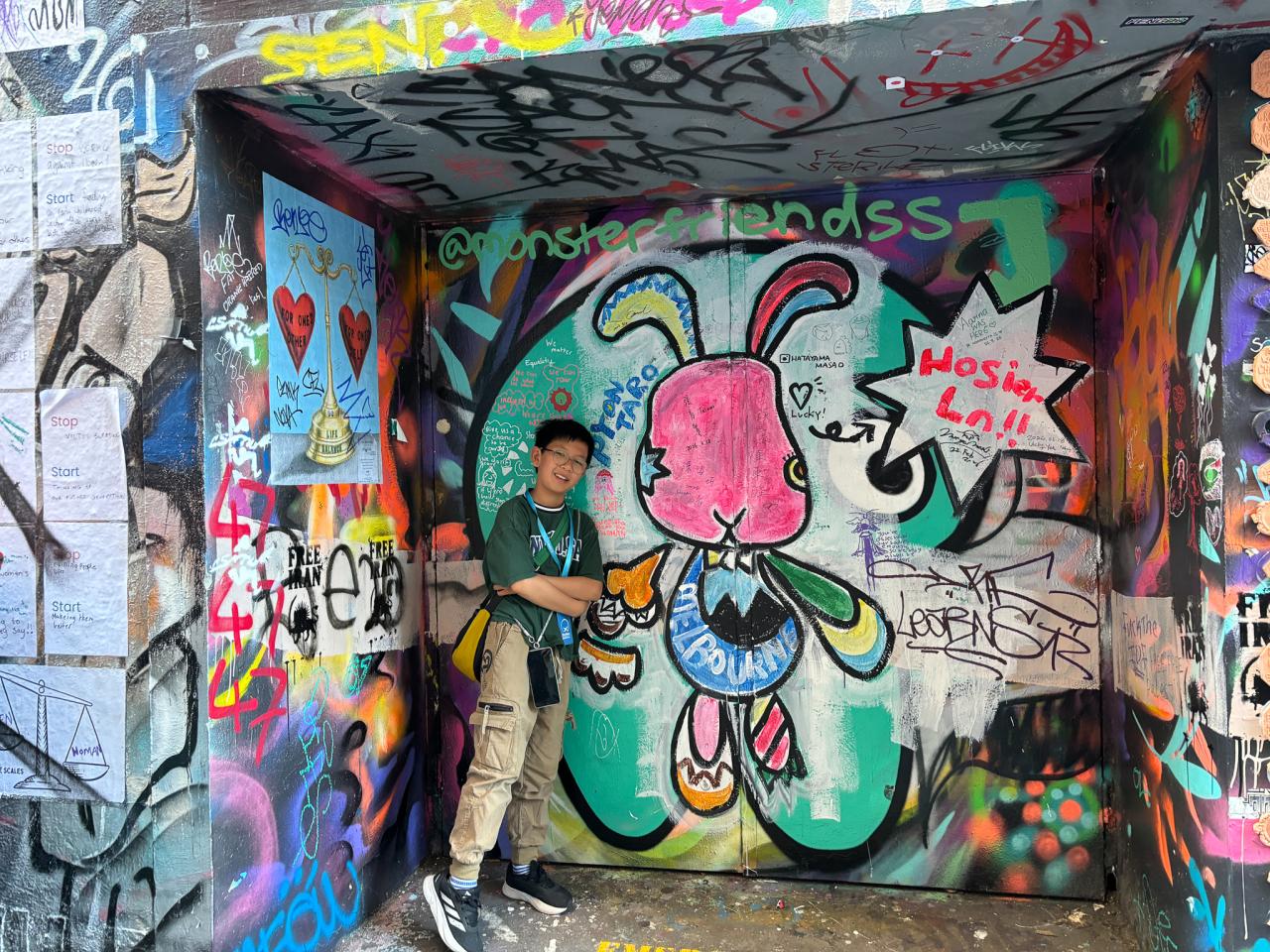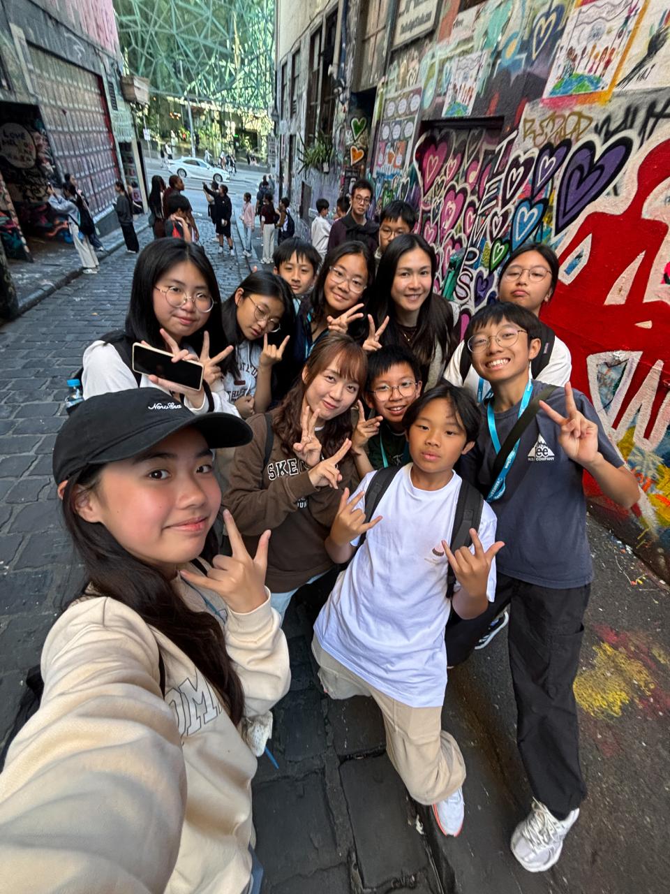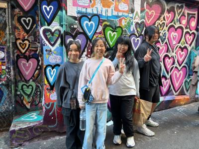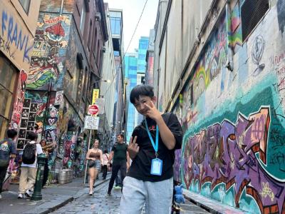 然後我們便去了一個聯邦廣場,這裏有一個很大的空地和舞台,給別人舉辦派對呢。接著,我們又去到火車站和澳洲雅拉河(Yarra River)拍照呢,這裏的河流實在太美麗壯觀了!我們還去了塗鴉街呢!這裏有很多不同人畫的塗鴉呢!實在太漂亮了