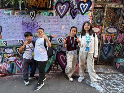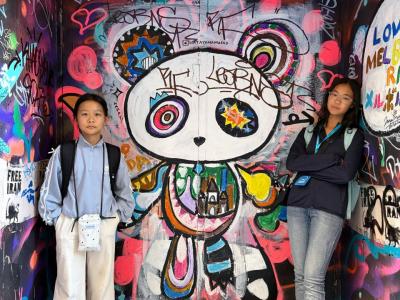 Then we got on the bus and got ready for our final trip, which was the city walk! During the walk, we saw lots of amazing buildings and scenery, like the train station built in the 1850s, the graffiti valley filled with beautiful paintings, and the big church which looked absolutely gorgeous!