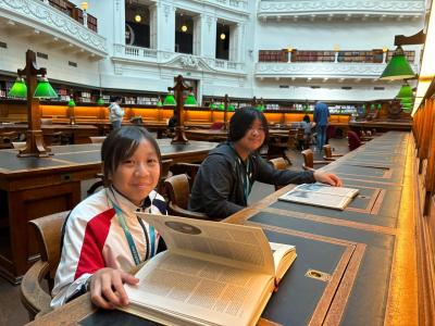 Next, we went to the prettiest library in the world — the State Library Victoria ! It was an interesting place to visit because we could read all sorts of special and different kinds of books, such as novels, fiction, and stories, etc.