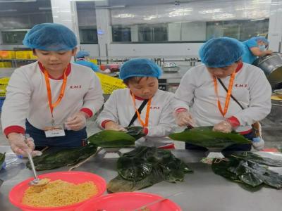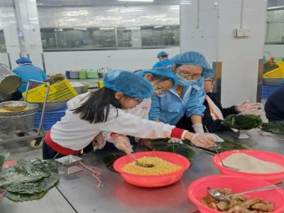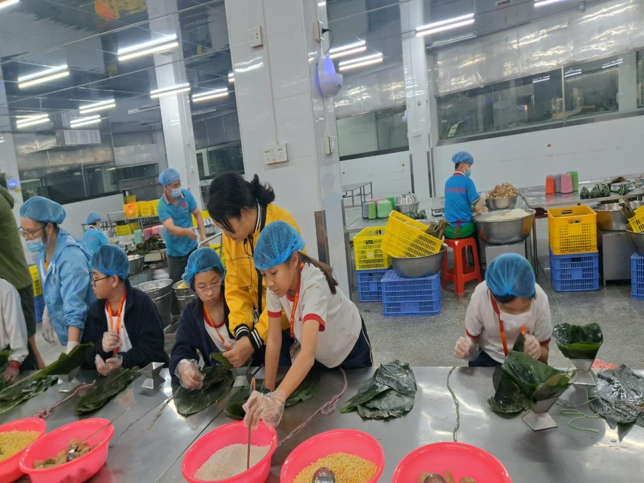 最讓同學們津津樂道的,莫過於製作裹蒸粽的親身體驗。在導師的指導下,同學們認真學習、互相幫助,雖然手法略顯生疏,但每一個裹蒸粽都承載著大家的歡笑與努力。