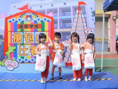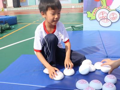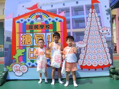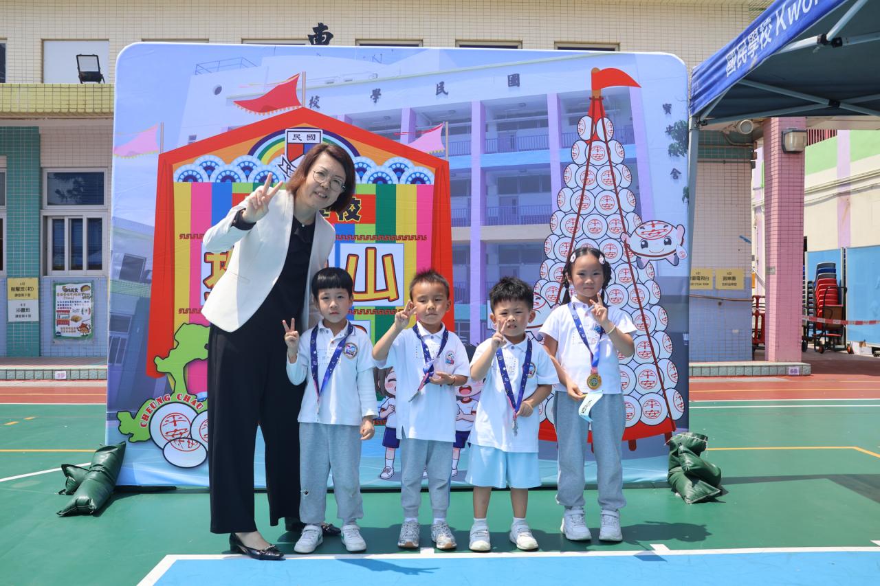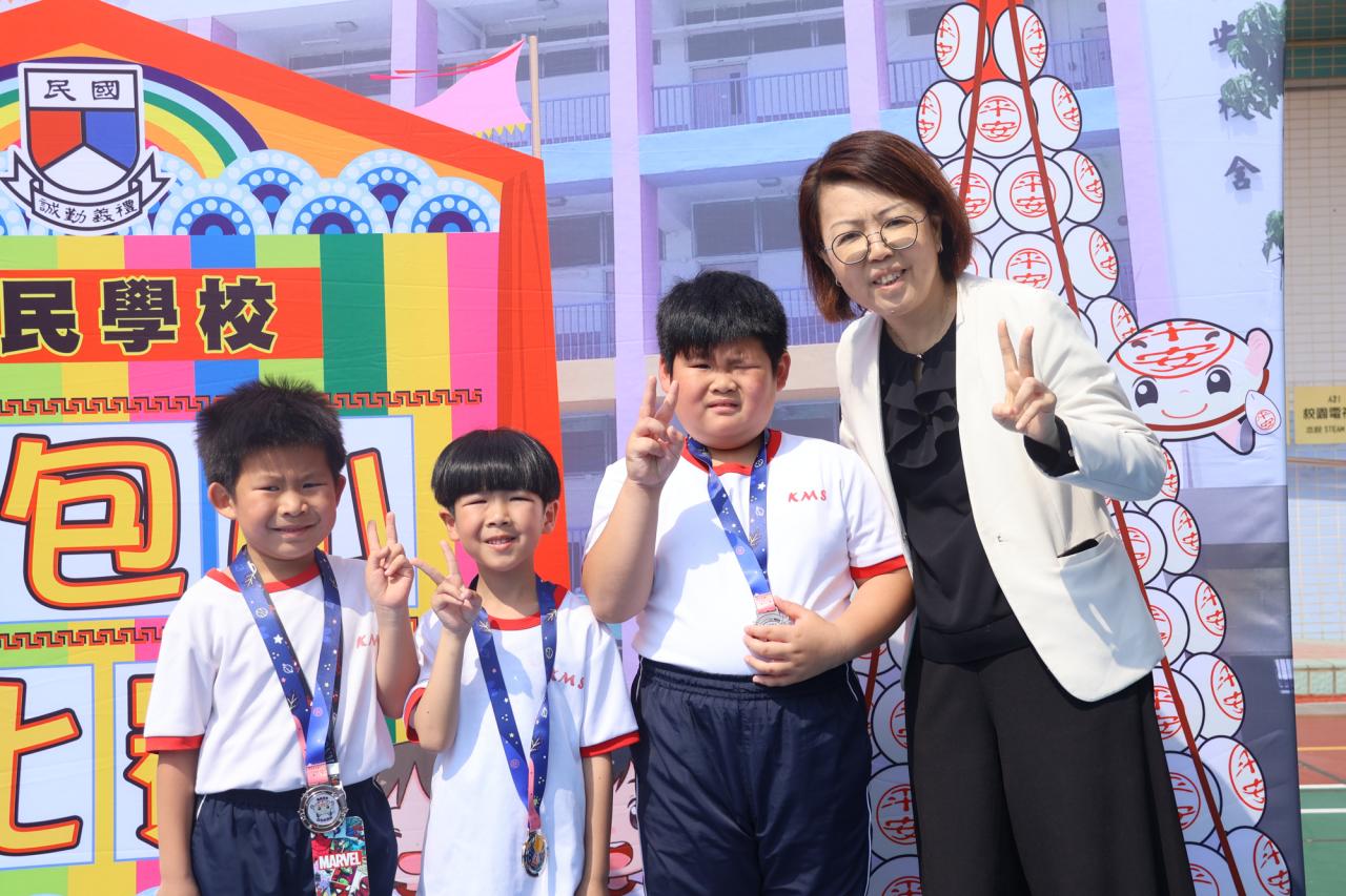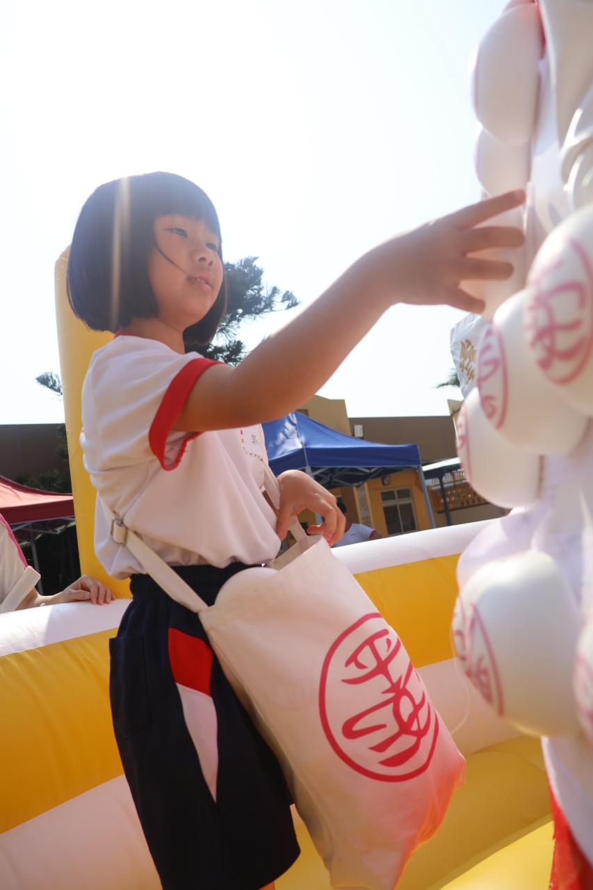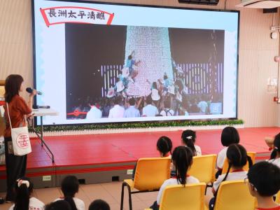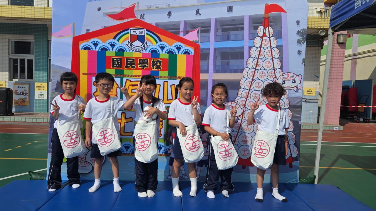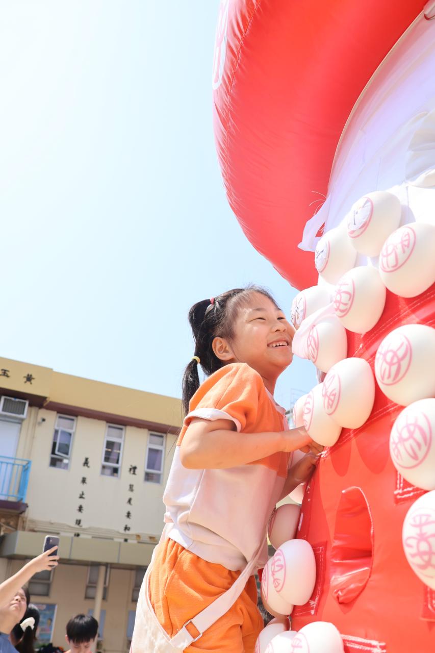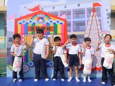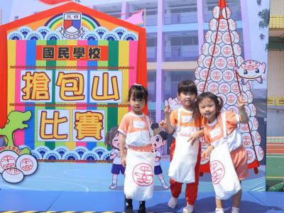 這是一場充滿歡樂的校園「搶包山比賽」!操場上矗立着一座吸睛的充氣包山,上面掛滿了象徵祝福的「平安包」。本校初小學生及幼稚園小朋友們背着專屬的平安小袋,個個興奮不已,努力踮起腳尖、伸手摘取平安包。看着他們認真又投入的神情,以及與同學們開心合影時那燦爛的笑容,這場別開生面的活動,讓孩子們在歡笑中親身體驗了長洲太平清醮的傳統節慶活動,真是很有意義!