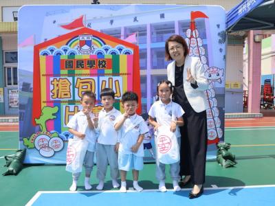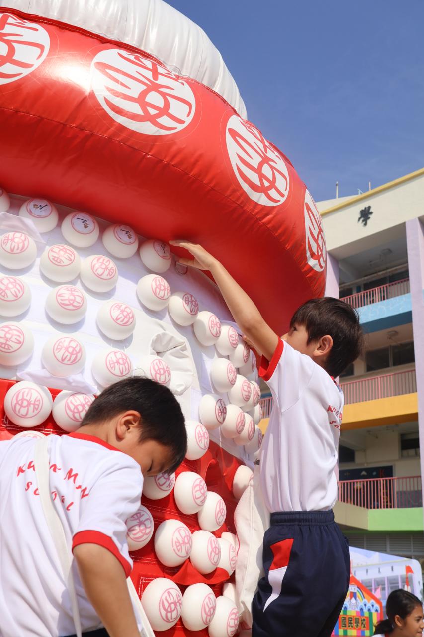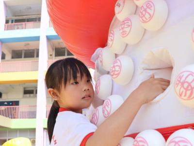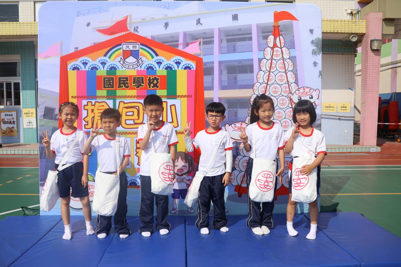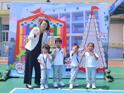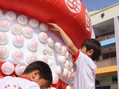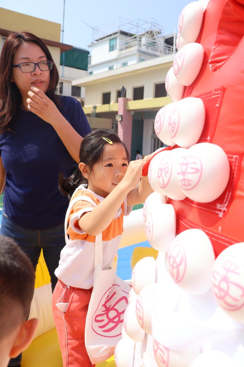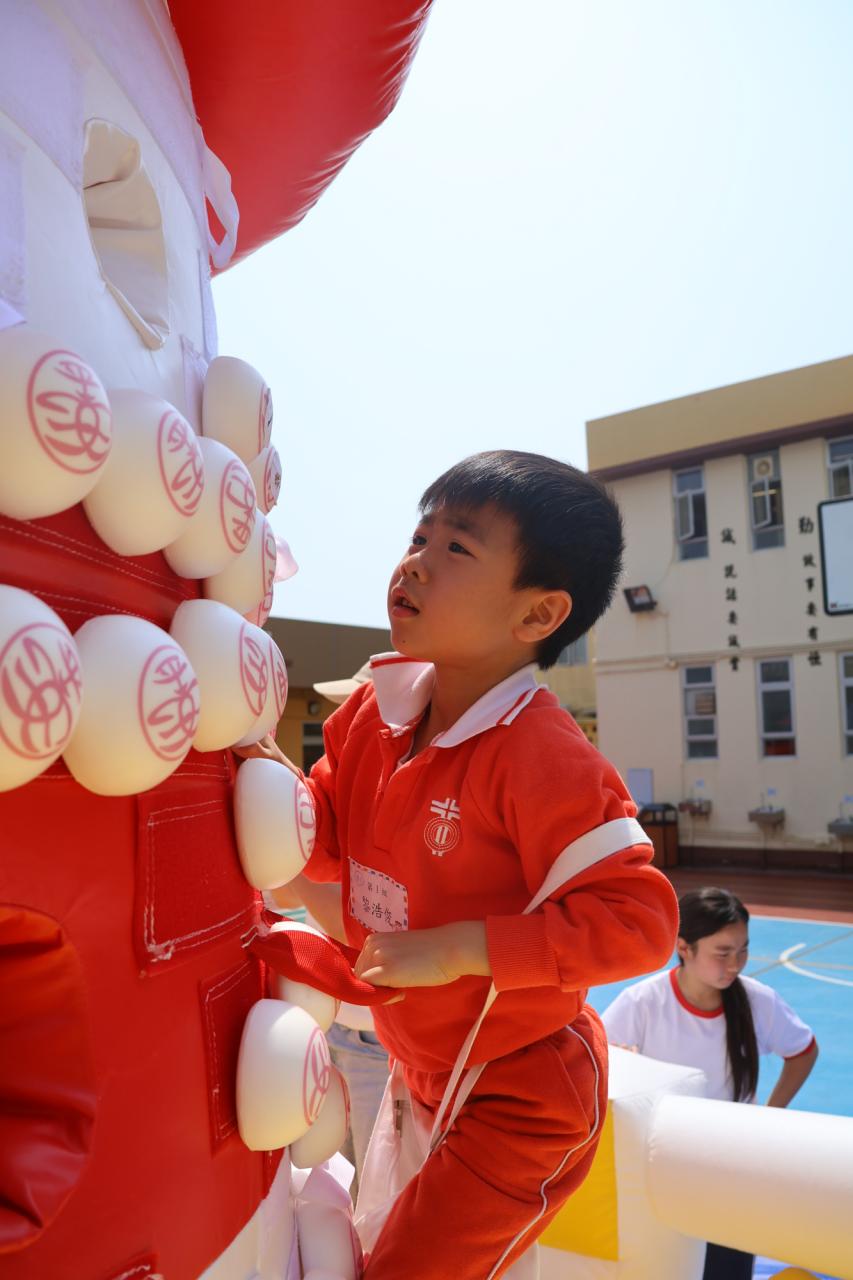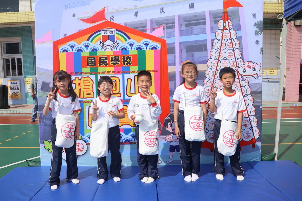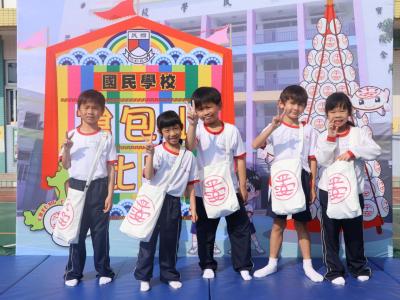 這是一場充滿歡樂的校園「搶包山比賽」!操場上矗立着一座吸睛的充氣包山,上面掛滿了象徵祝福的「平安包」。本校初小學生及幼稚園小朋友們背着專屬的平安小袋,個個興奮不已,努力踮起腳尖、伸手摘取平安包。看着他們認真又投入的神情,以及與同學們開心合影時那燦爛的笑容,這場別開生面的活動,讓孩子們在歡笑中親身體驗了長洲太平清醮的傳統節慶活動,真是很有意義!