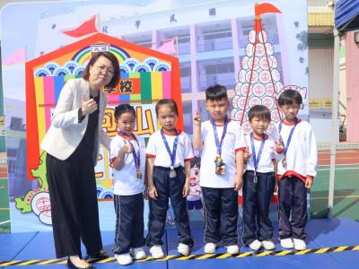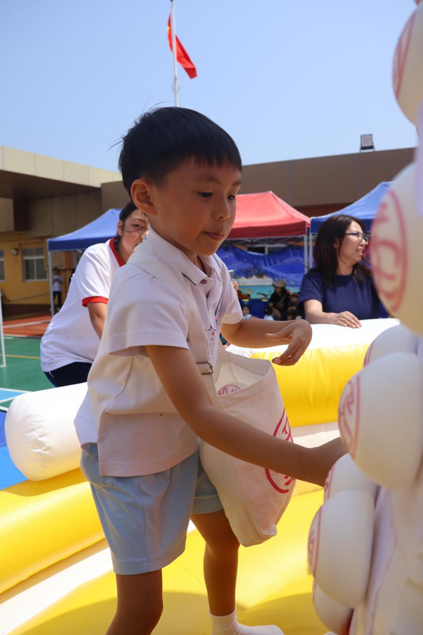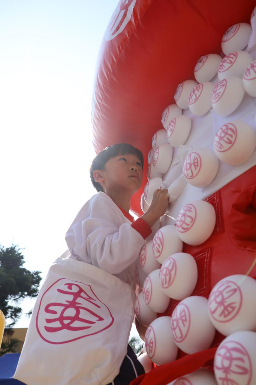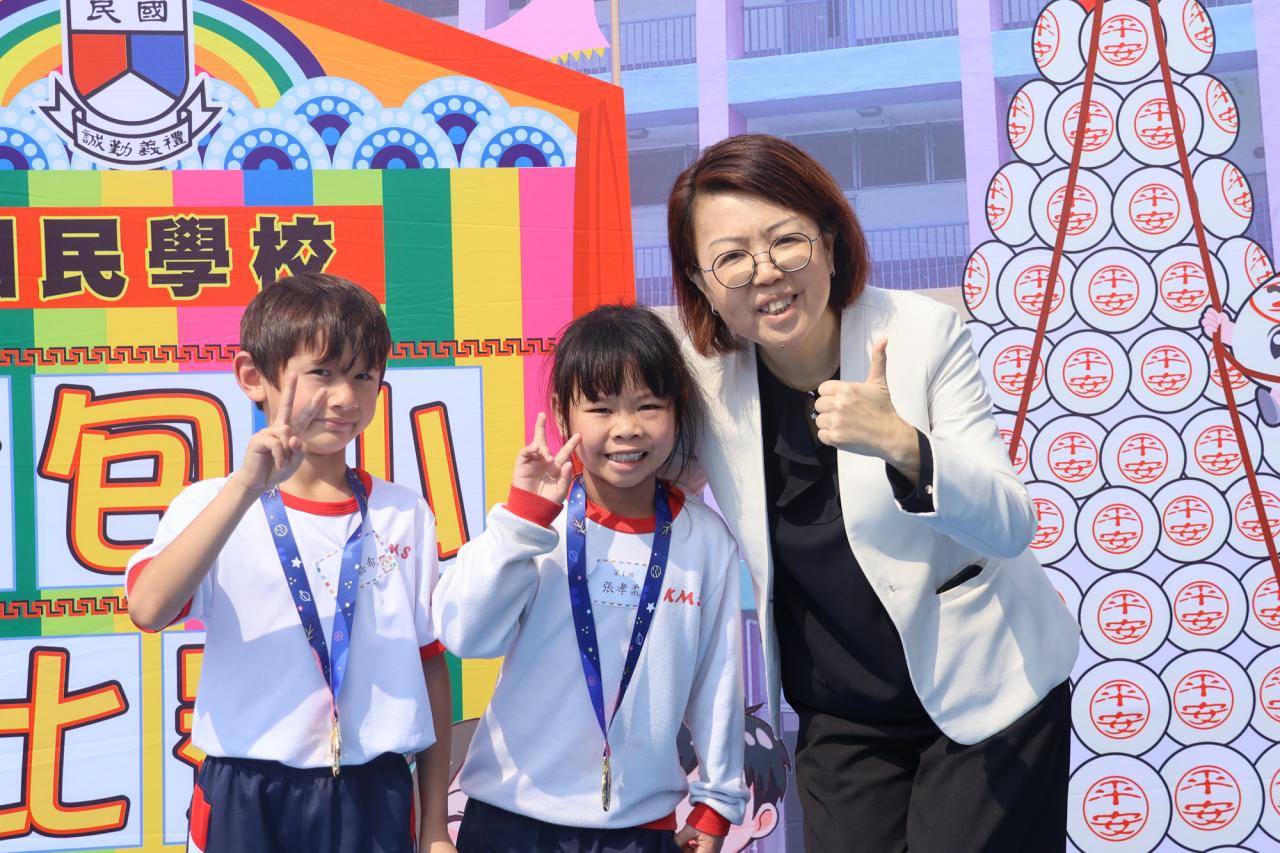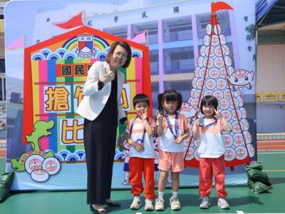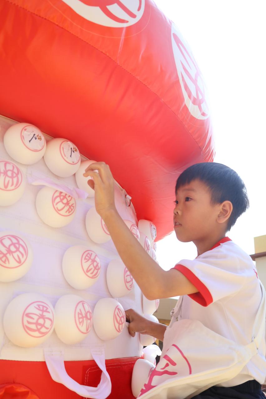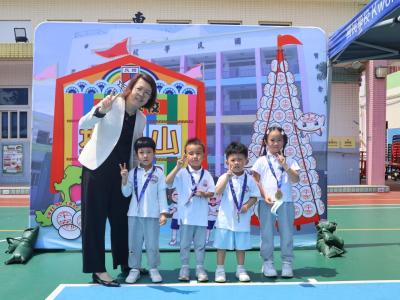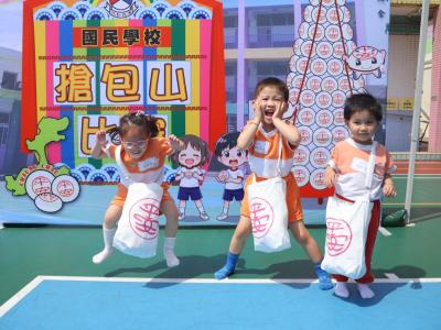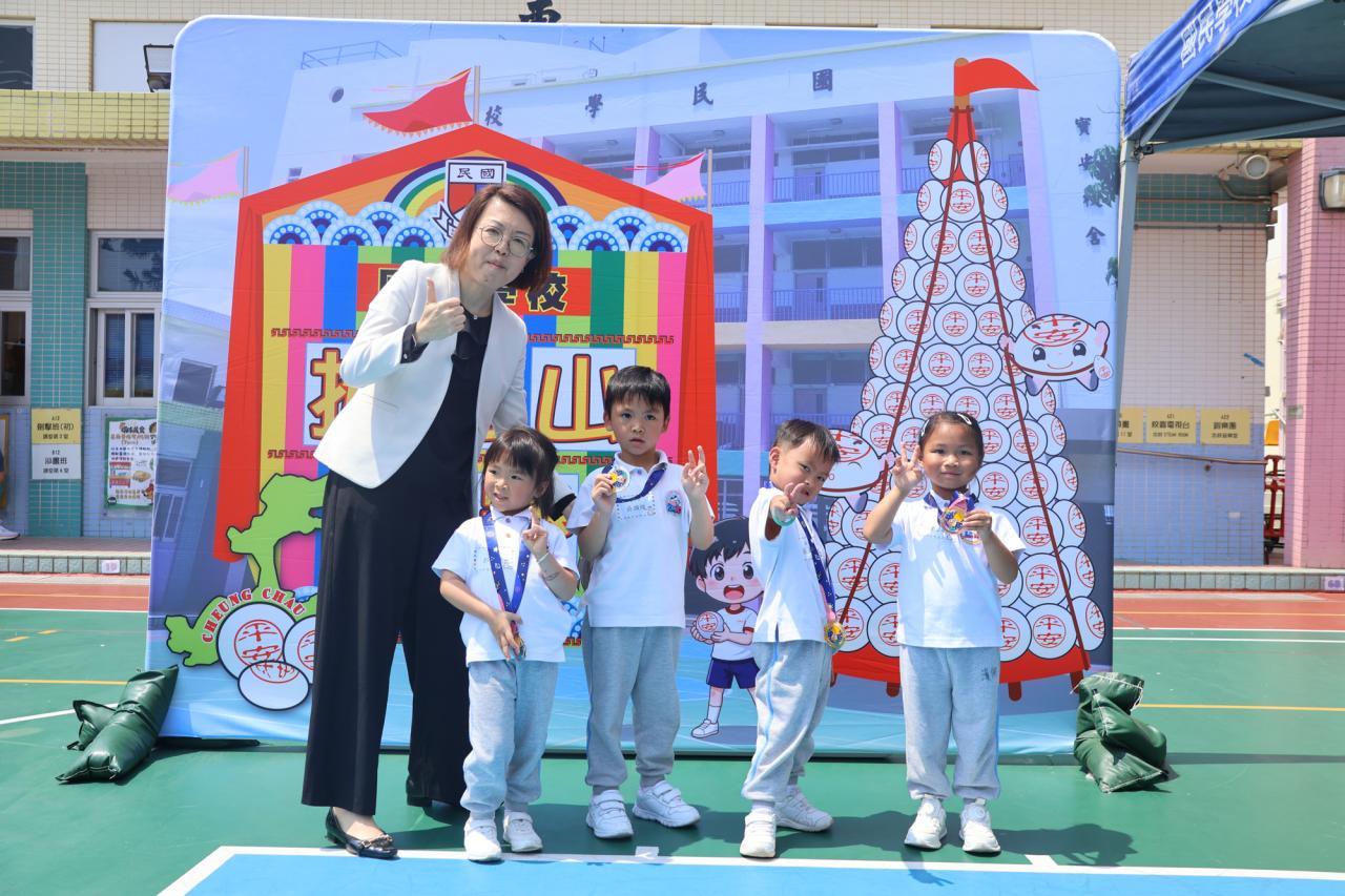 這是一場充滿歡樂的校園「搶包山比賽」!操場上矗立着一座吸睛的充氣包山,上面掛滿了象徵祝福的「平安包」。本校初小學生及幼稚園小朋友們背着專屬的平安小袋,個個興奮不已,努力踮起腳尖、伸手摘取平安包。看着他們認真又投入的神情,以及與同學們開心合影時那燦爛的笑容,這場別開生面的活動,讓孩子們在歡笑中親身體驗了長洲太平清醮的傳統節慶活動,真是很有意義!