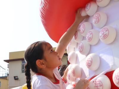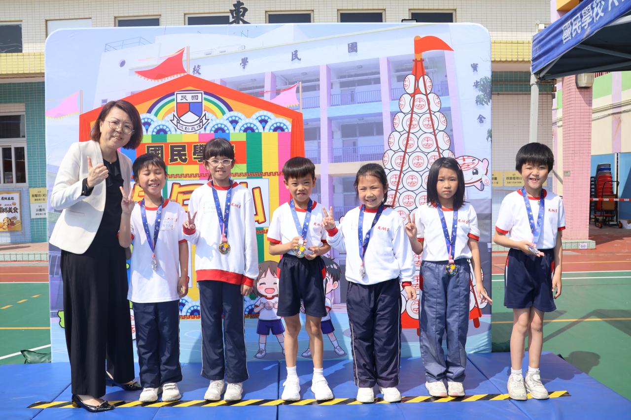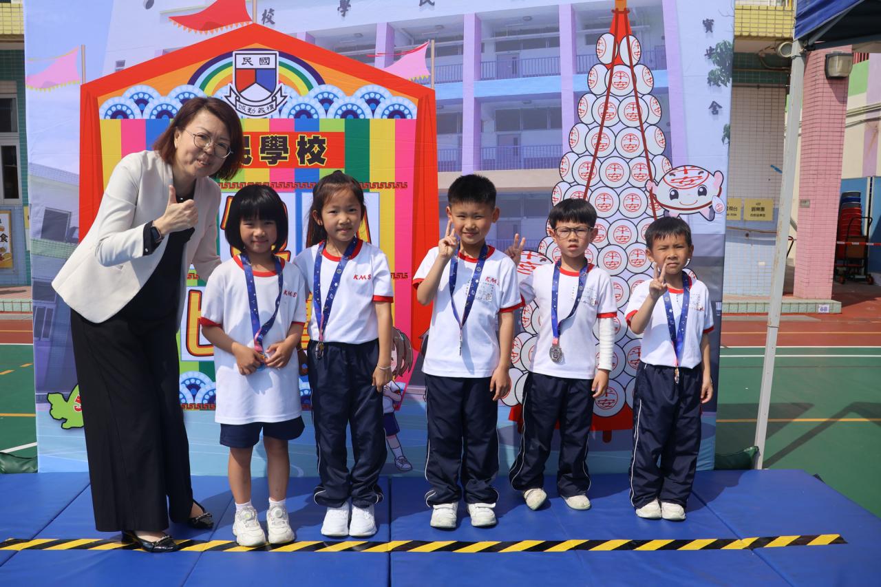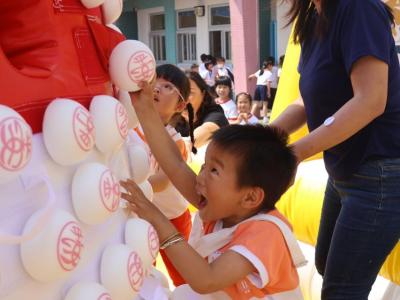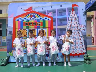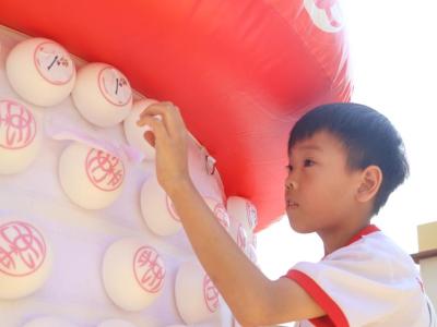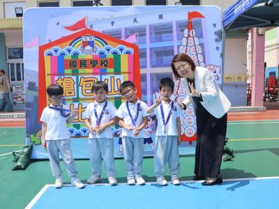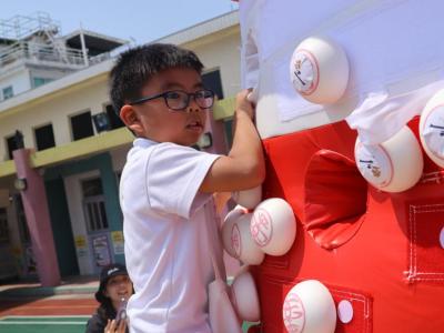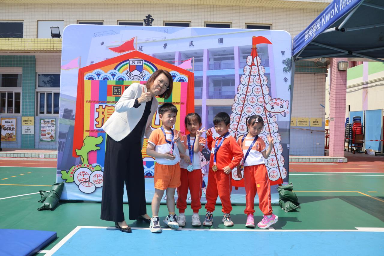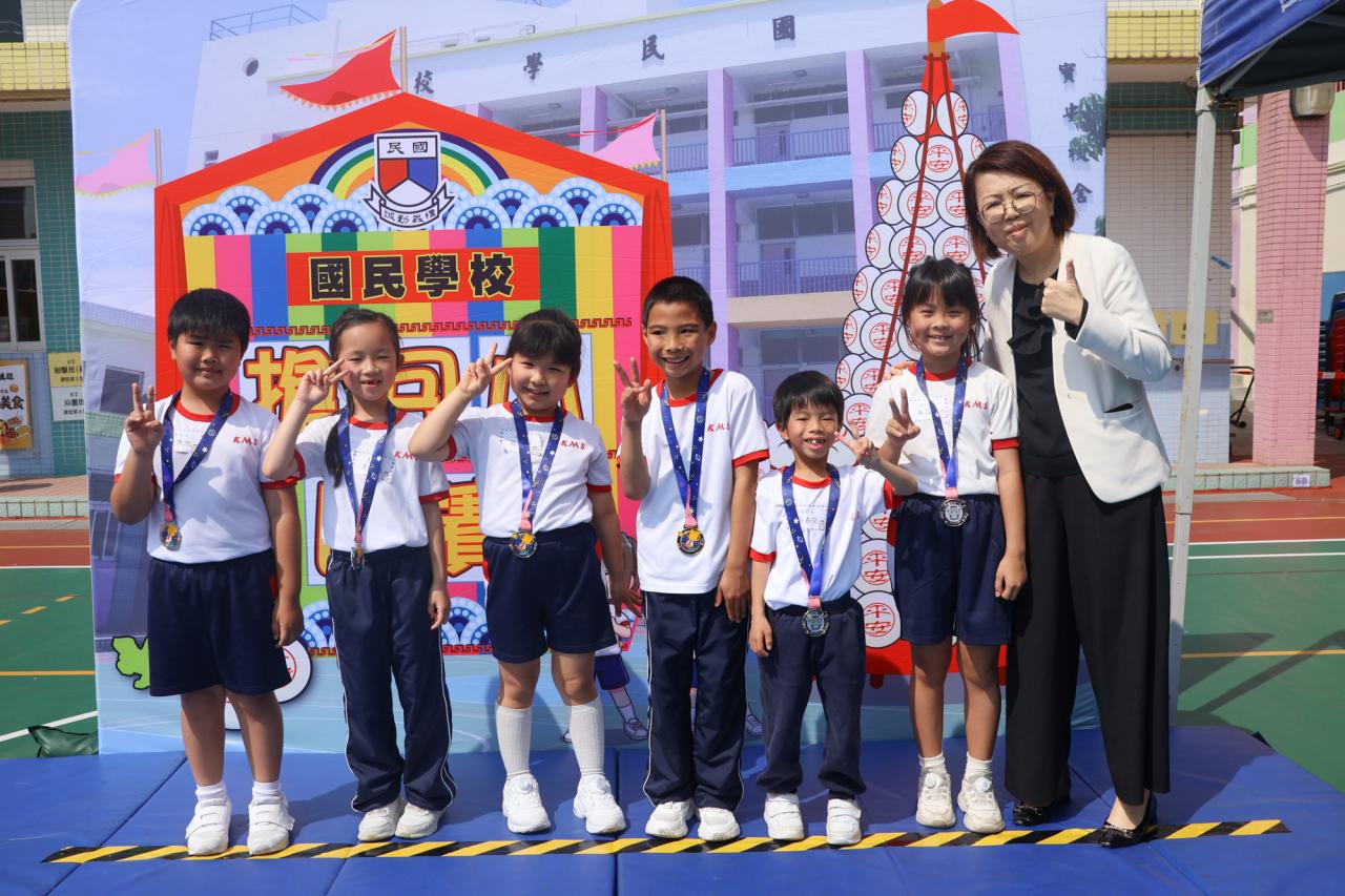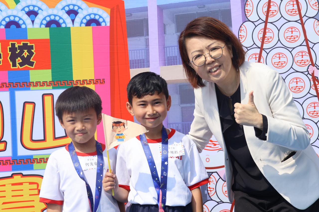 這是一場充滿歡樂的校園「搶包山比賽」!操場上矗立着一座吸睛的充氣包山,上面掛滿了象徵祝福的「平安包」。本校初小學生及幼稚園小朋友們背着專屬的平安小袋,個個興奮不已,努力踮起腳尖、伸手摘取平安包。看着他們認真又投入的神情,以及與同學們開心合影時那燦爛的笑容,這場別開生面的活動,讓孩子們在歡笑中親身體驗了長洲太平清醮的傳統節慶活動,真是很有意義!
