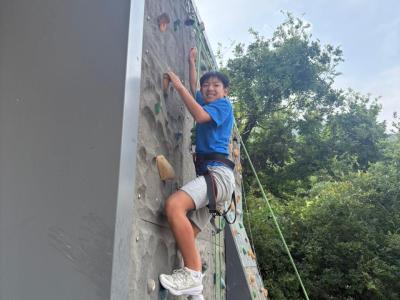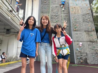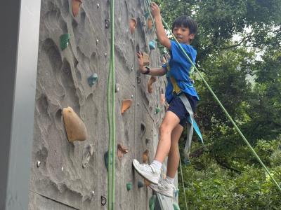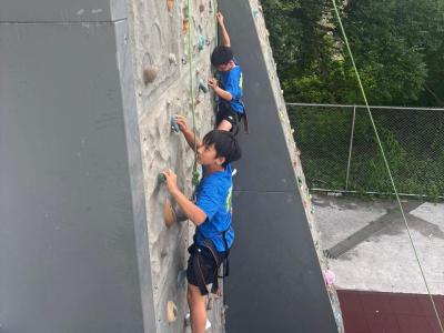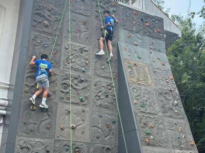 下午分組進行攀石與躲避盤,場上充滿吶喊與歡呼。