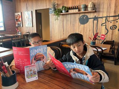 我們先吃過午餐,這家店的店員格外親切,而且我還發現了一根我從沒在任何一家餐廳中見過的棍子。它的兩端各有著紅色和白色的顏料,把紅色的那邊向上擺放,店員就會知道你需要他們的服務。反之,白色向上就代表不需要服務。另外,店員還給我一個汽水瓶蓋,它是用來投票的,沒錯,它是用來投票給你支持的慈善機構。晚飯之後,我們便可以把它放進投票箱中,而餐廳則會捐出500澳元給獲得票數最多的慈善機構。