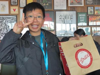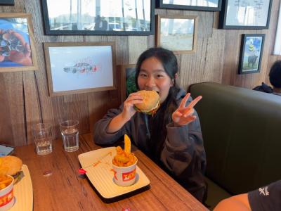 We went to a fast-food restaurant called Grill’d. We ate a delicious. It was very healthy because it had some fresh vegetables, and it was a natural hamburger. The meat was very juicy.