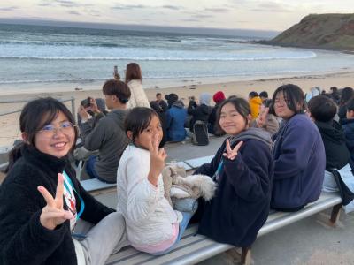 黃昏後,我們來到了我在整個澳洲交流中最期待的行程,也是菲利普島上的一大特色----觀看「企鵝歸巢」,而我們能看到的是神仙企鵝。(又名小企鵝、藍企鵝、小鰭腳企鵝,是企鵝家族中體型最小的物種,有別於其他常見企鵝,它們有一身藍色的羽毛,因此被稱作小藍企鵝。)我們坐在岸邊的凳上,等待神仙企鵝回巢。不過這一次,我們並沒有看到上百隻的企鵝成群結隊地回巢,但我們依然看到了幾隻神仙企鵝,它們在浪中一遍一遍的嘗試,最後也終於成功上岸。而且,菲利普島的環境很好,夜晚的天上可以看到清晰的星河,浩瀚深邃。