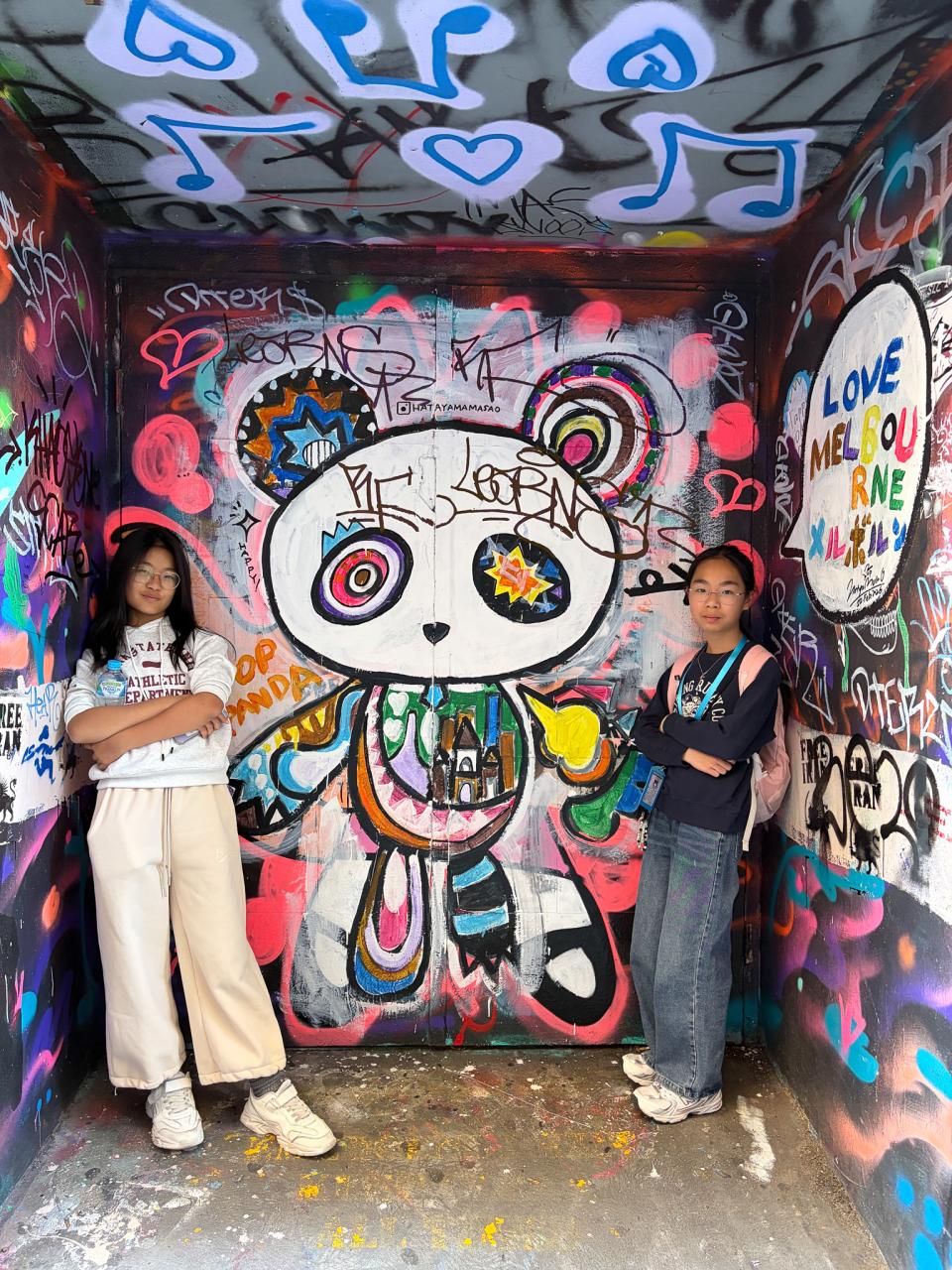 然後我們便去了一個聯邦廣場,這裏有一個很大的空地和舞台,給別人舉辦派對呢。接著,我們又去到火車站和澳洲雅拉河(Yarra River)拍照呢,這裏的河流實在太美麗壯觀了!我們還去了塗鴉街呢!這裏有很多不同人畫的塗鴉呢!實在太漂亮了