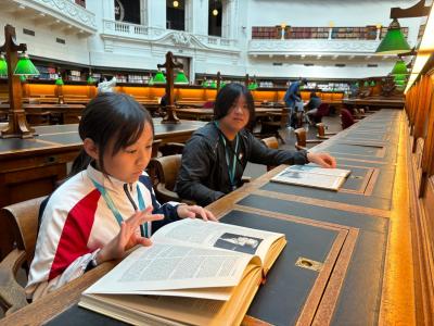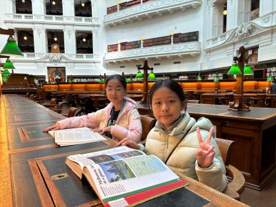 Next, we went to the prettiest library in the world — the State Library Victoria ! It was an interesting place to visit because we could read all sorts of special and different kinds of books, such as novels, fiction, and stories, etc.