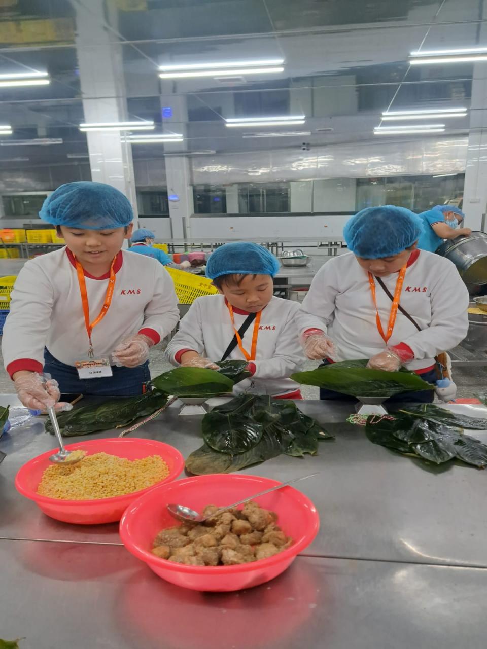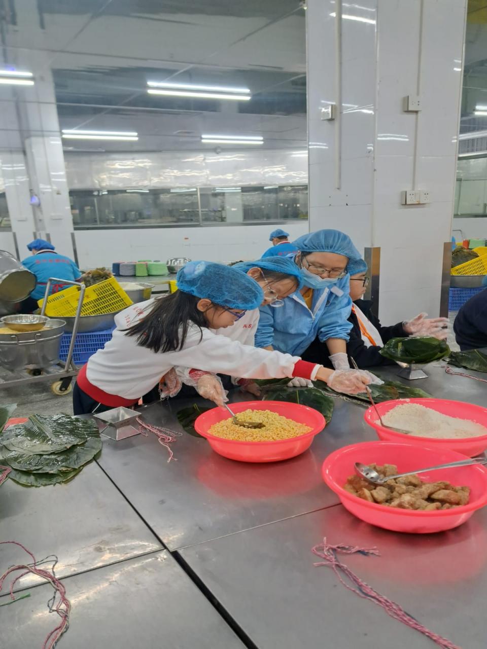 最讓同學們津津樂道的,莫過於製作裹蒸粽的親身體驗。在導師的指導下,同學們認真學習、互相幫助,雖然手法略顯生疏,但每一個裹蒸粽都承載著大家的歡笑與努力。